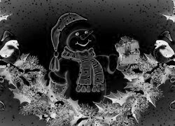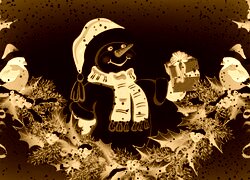 Edytor tapety: Zimowa grafika z bałwankiem i ptaszkami