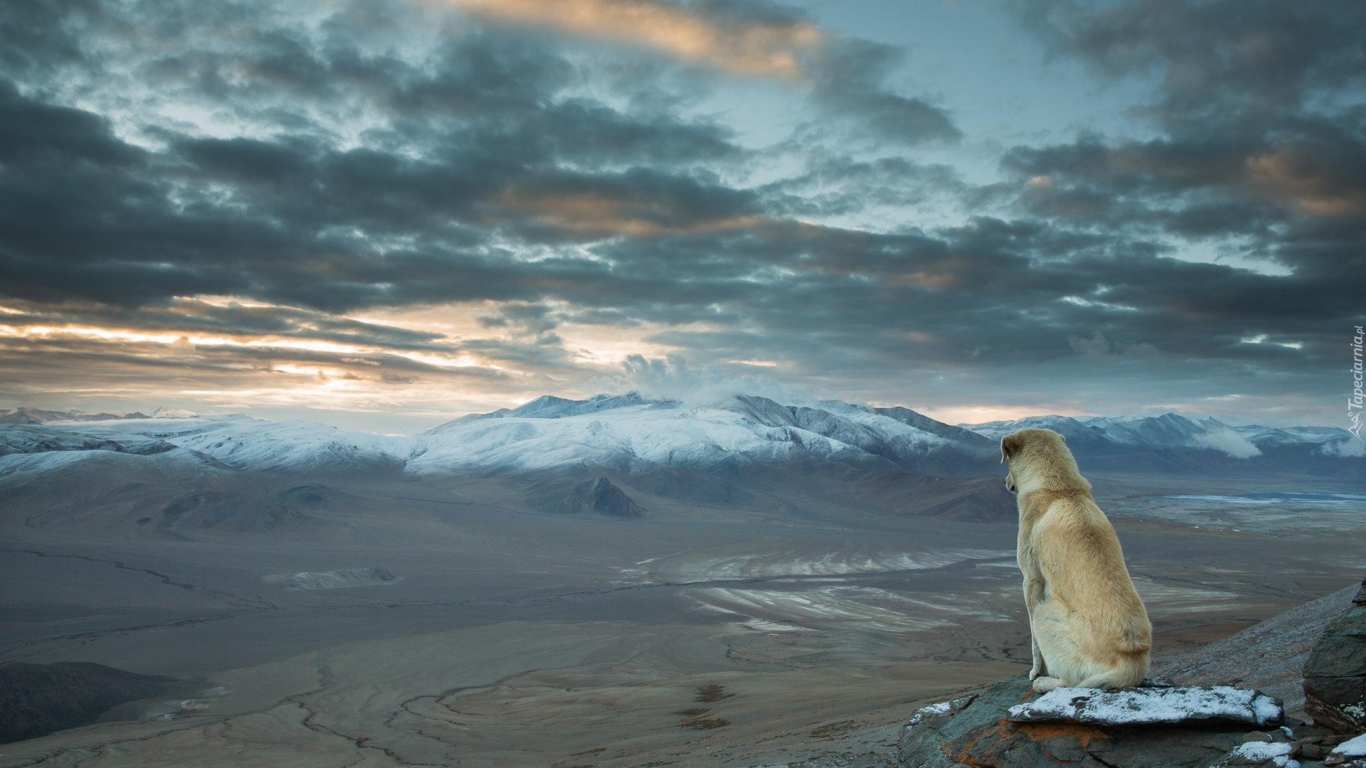 Edytor tapety: Pies spogląda na dolinę w Himalajach