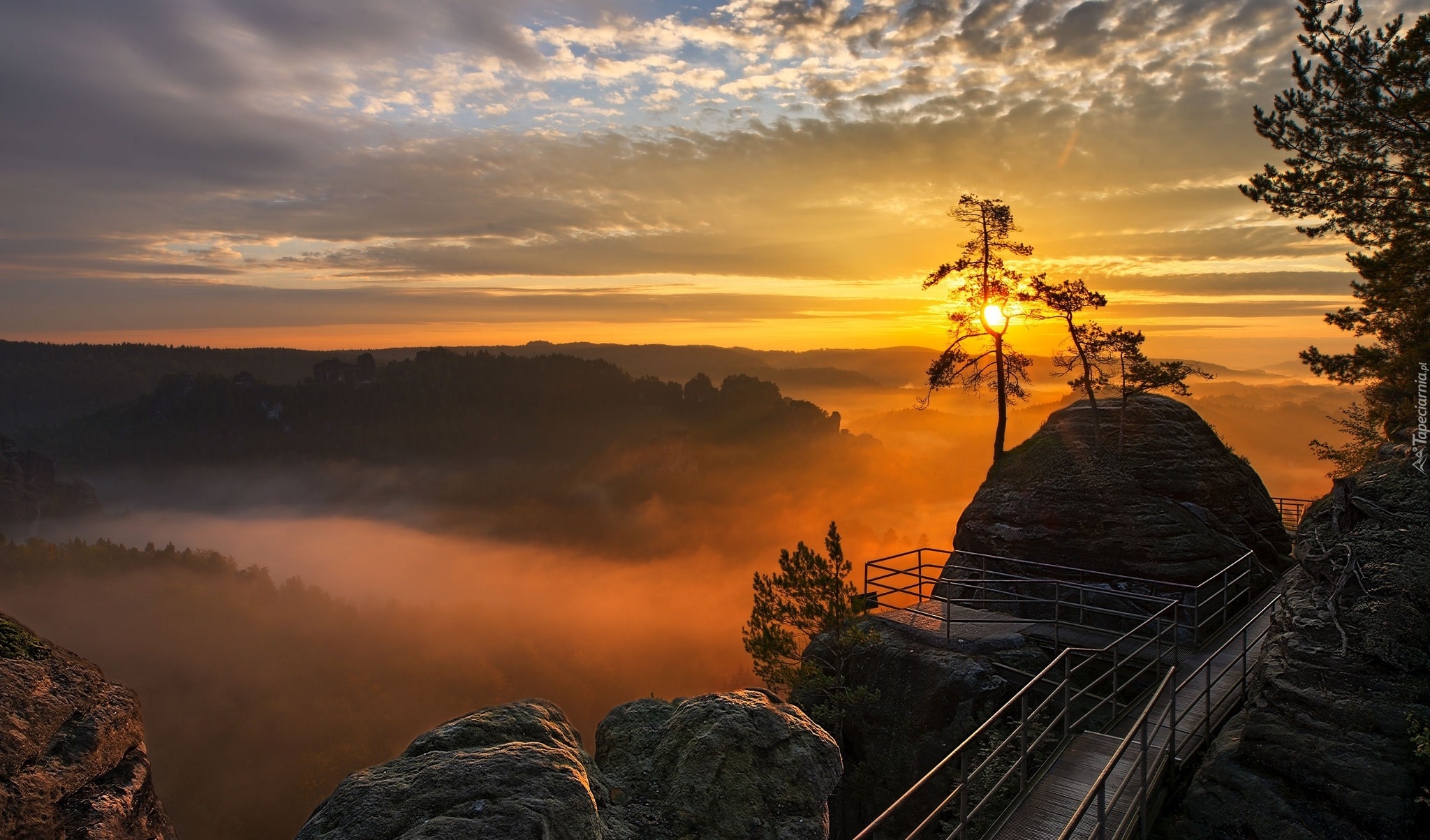 Edytor tapety: Wschód słońca w Parku Narodowym Saskiej Szwajcarii