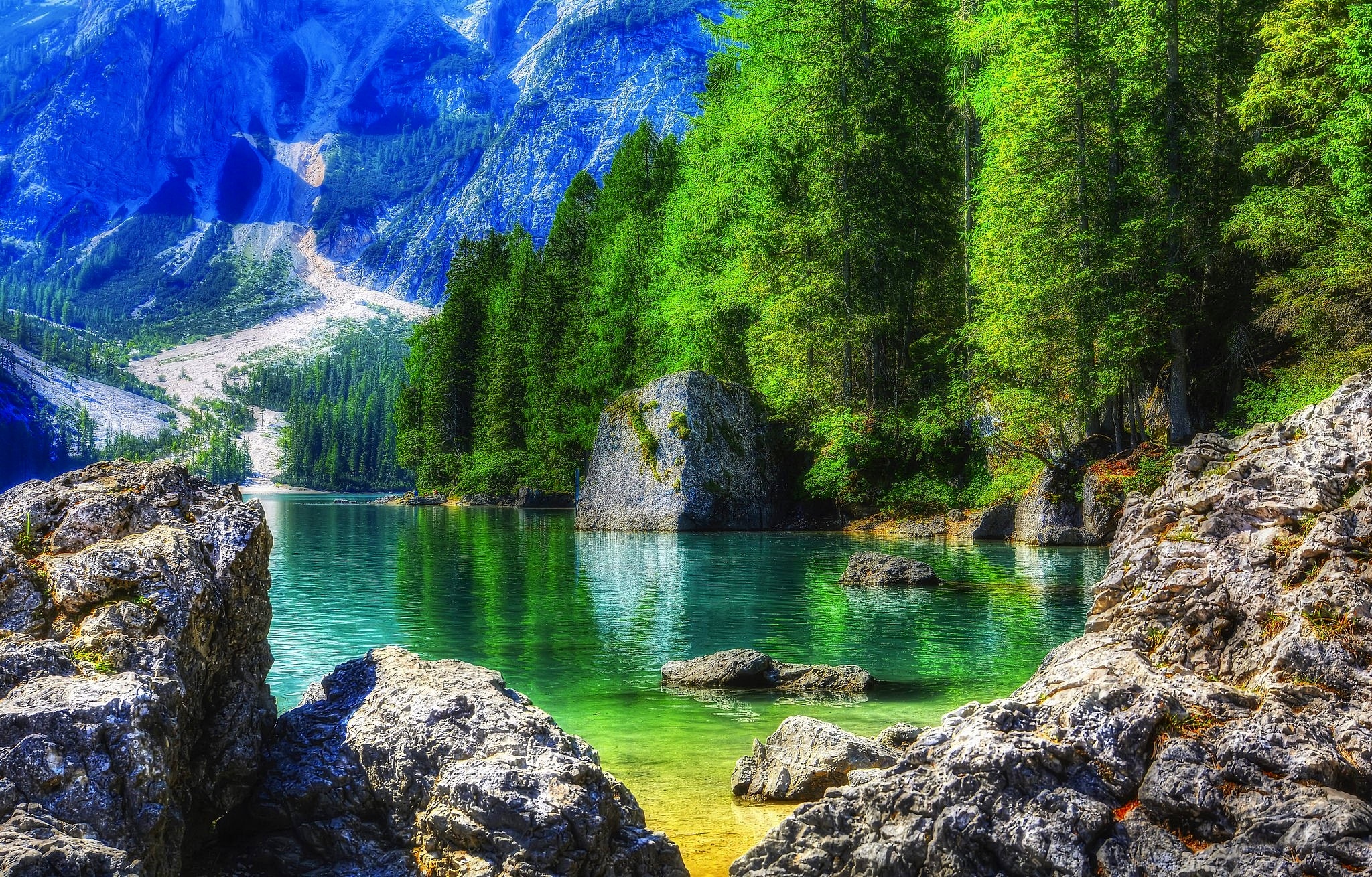 Edytor tapety: Jezioro Pragser Wildsee we Włoszech