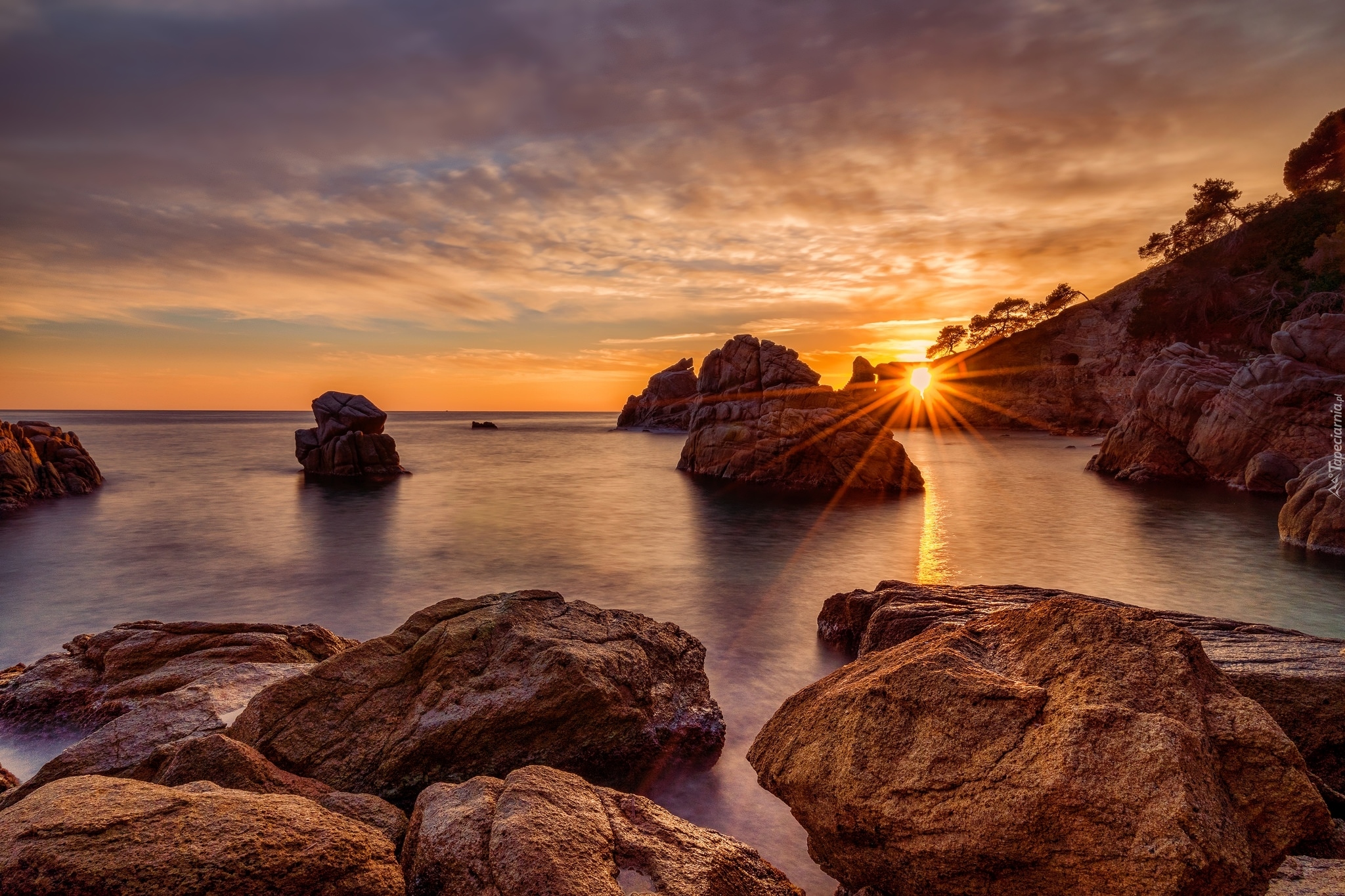 Edytor tapety: Morskie skały w blasku zachodzącego słońca