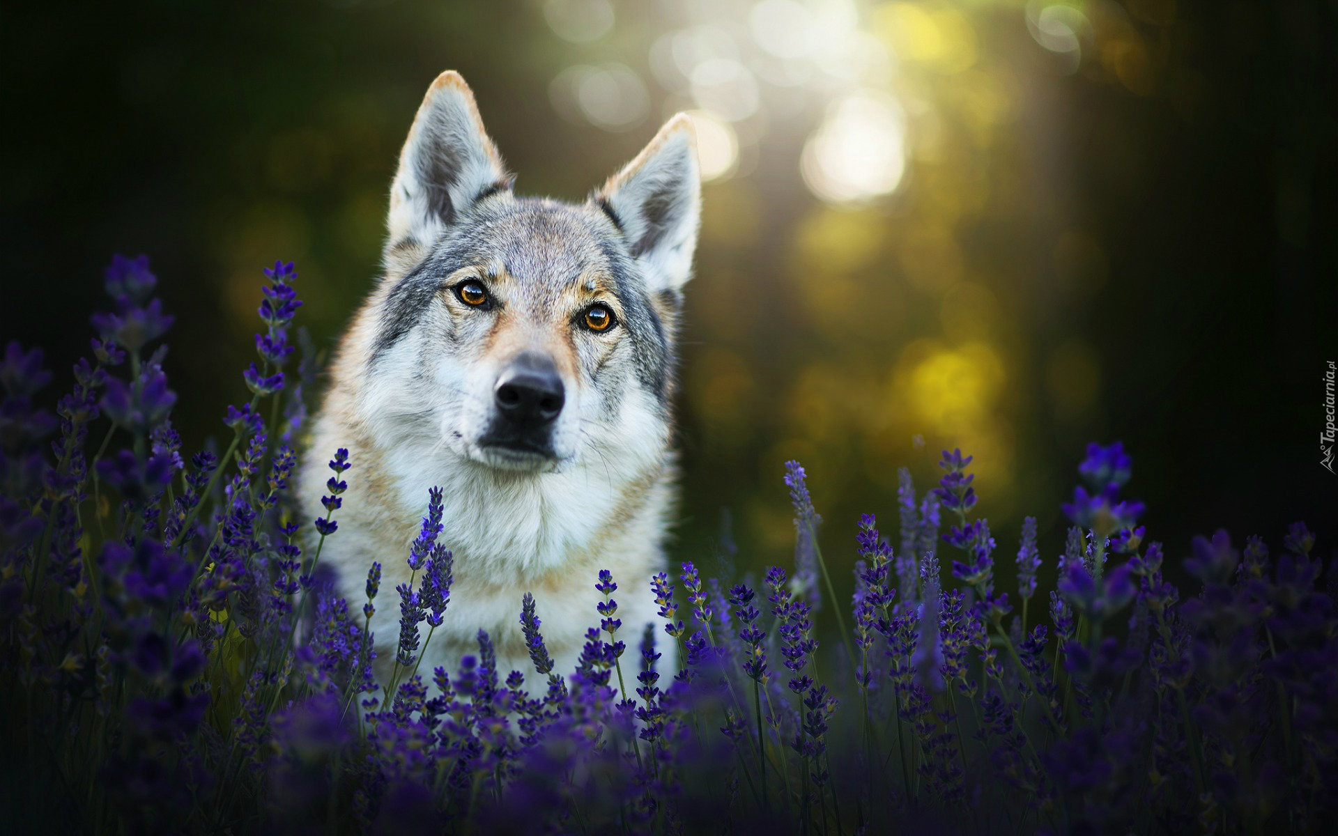 Edytor tapety: Wilczak czechosłowacki w kwiatach lawendy