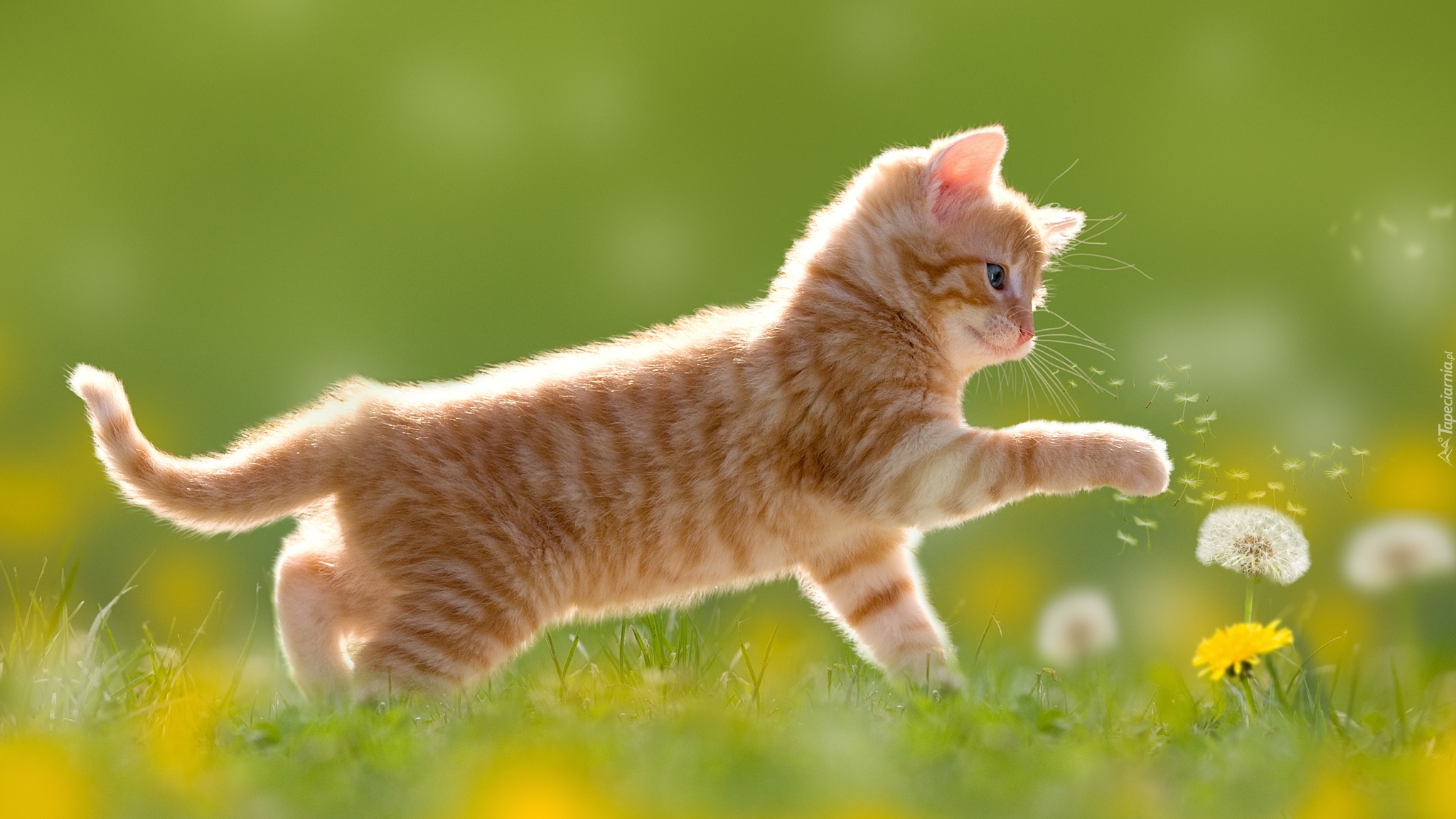 Edytor tapety: Słodki kotek bawiący się dmuchawcem