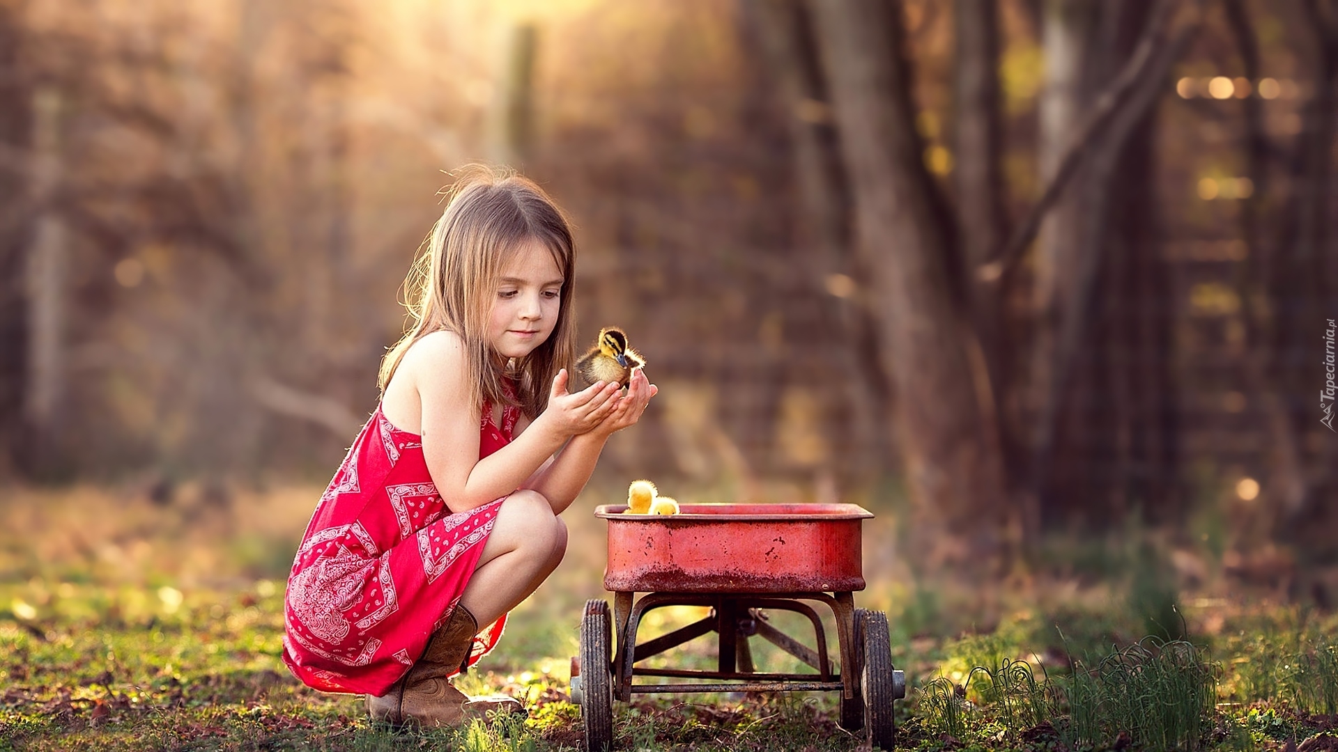 Edytor tapety: Dziewczynka i małe kaczuszki