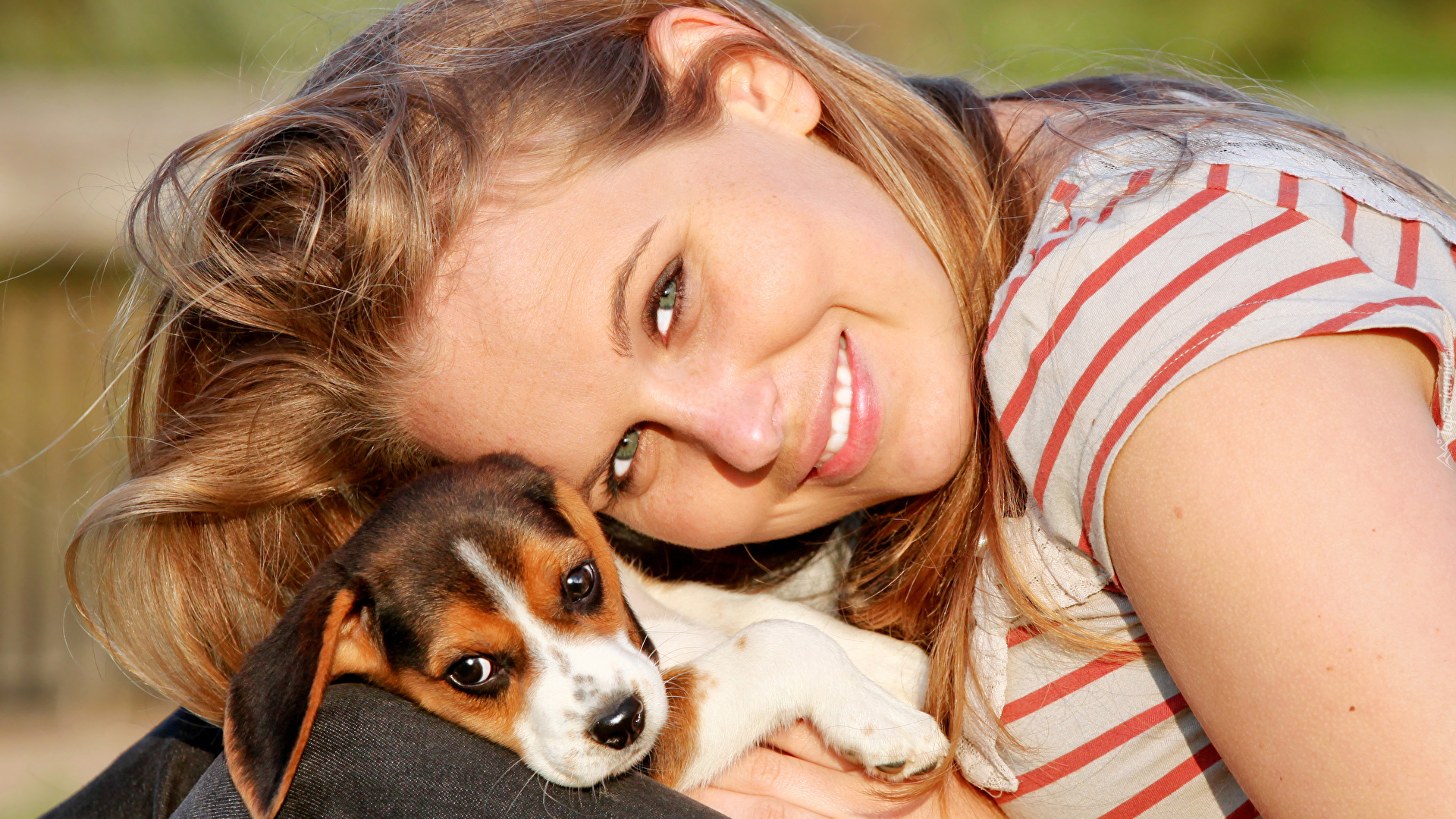 Edytor tapety: Blondynka ze szczeniakiem beaglea