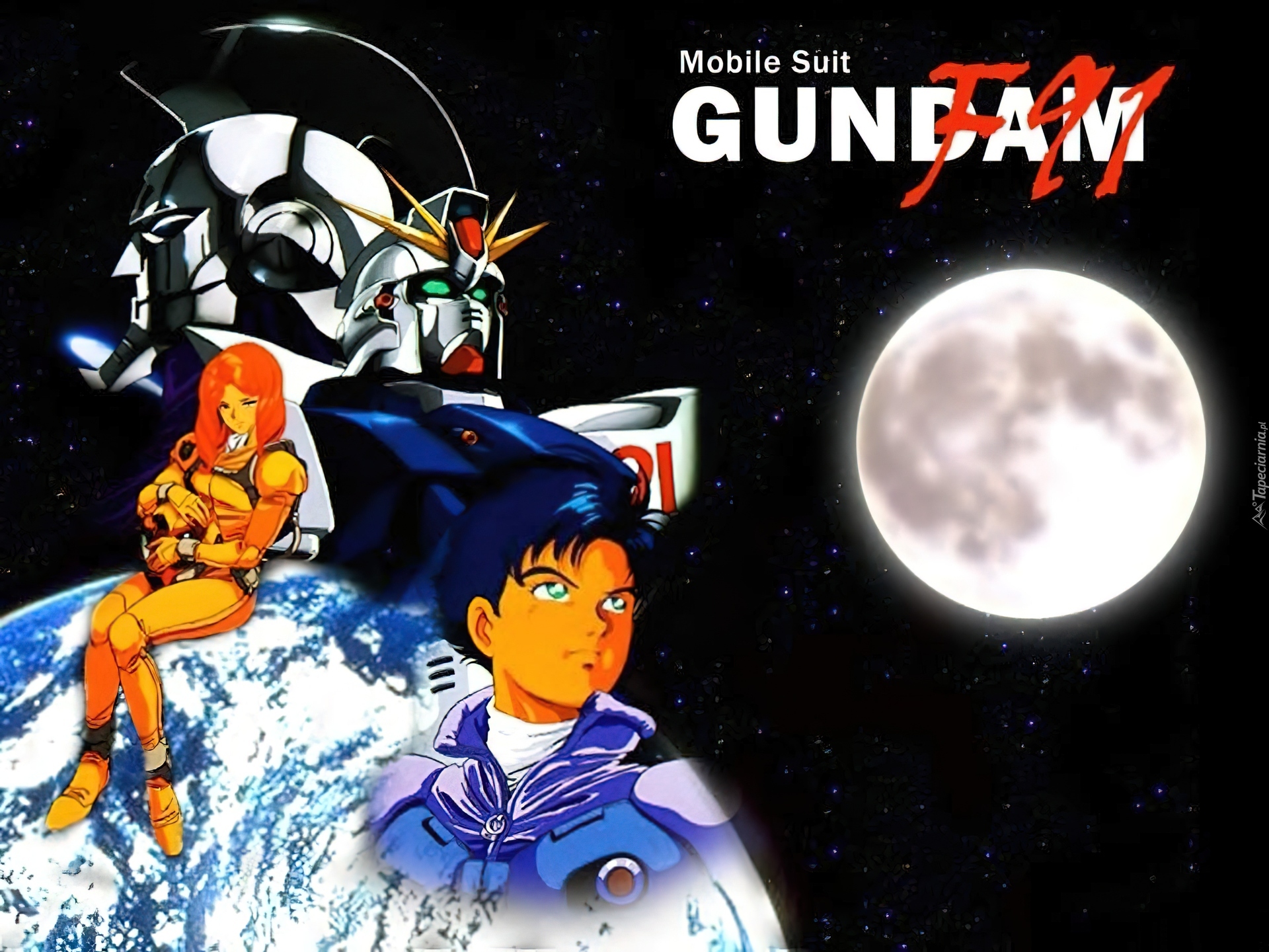 Edytor tapety: Gundam Wing, księżyc, ziemia, ludzie, maska