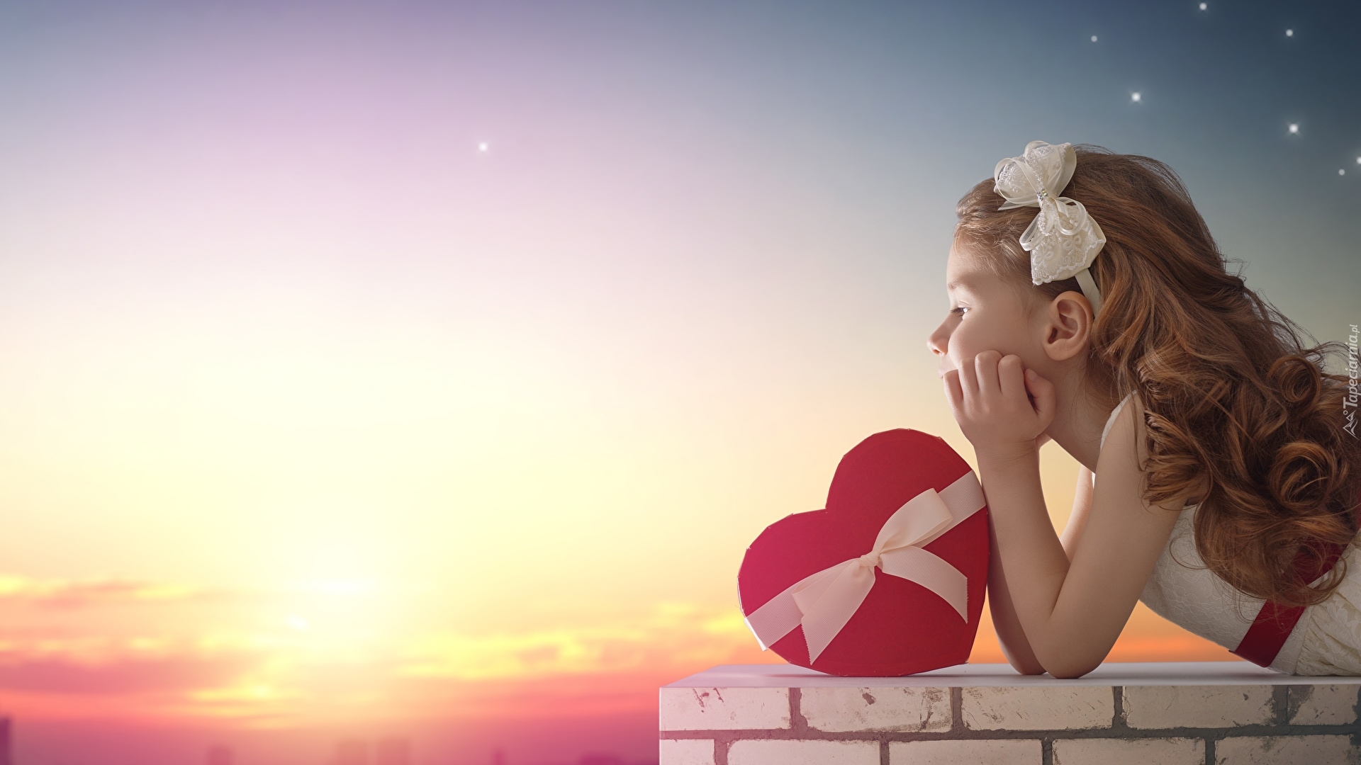 Edytor tapety: Dziewczynka z sercem przewiązanym wstążką