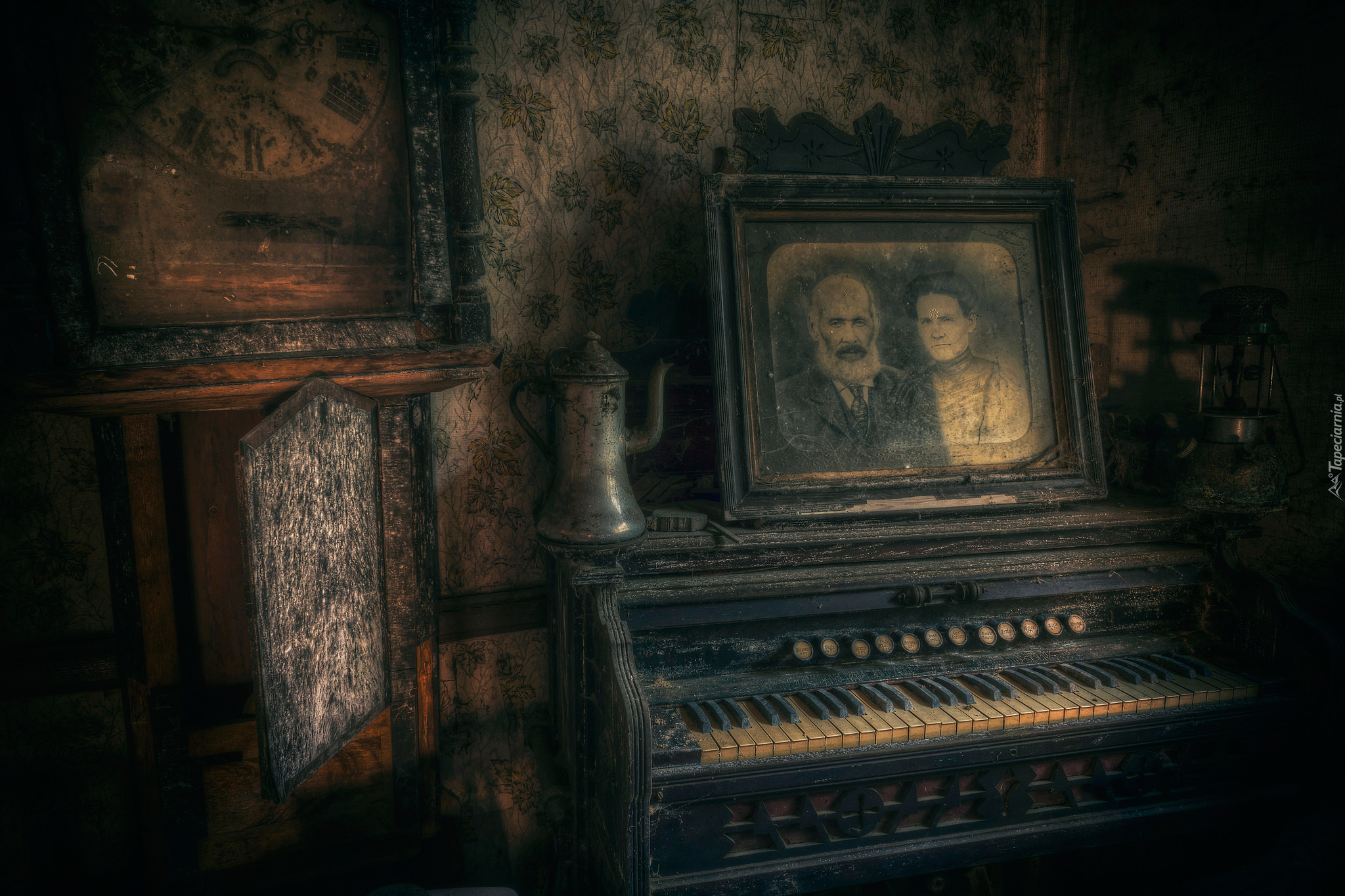 Edytor tapety: Portret na organach w zaniedbanym pokoju