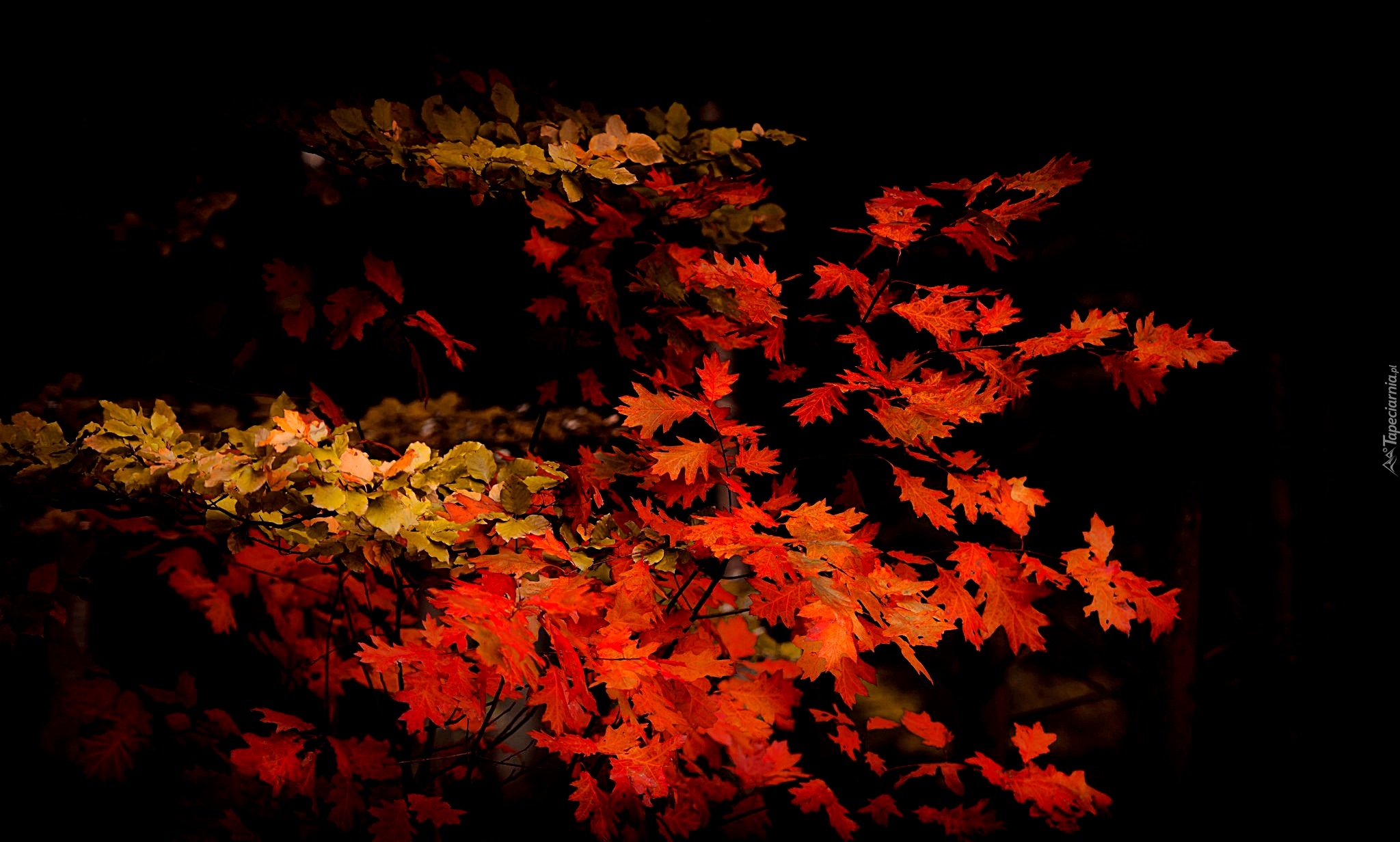 Edytor tapety: Gałązki z czerwonymi liśćmi na czarnym tle