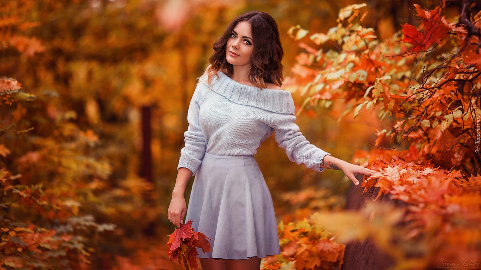 Edytor tapety: Dziewczyna pośród drzew z kolorowymi liśćmi