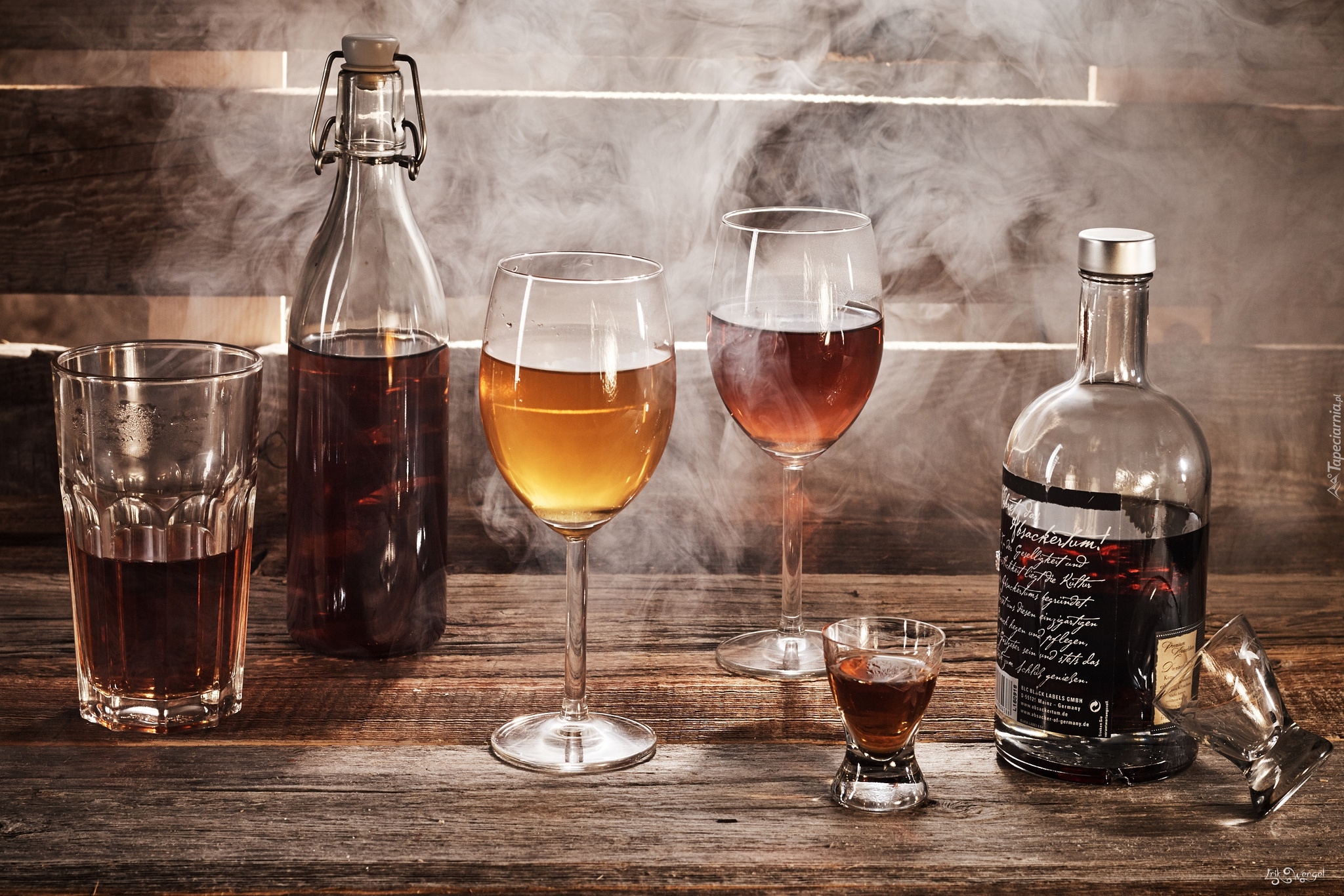 Edytor tapety: Alkohol w butelkach i w kieliszkach