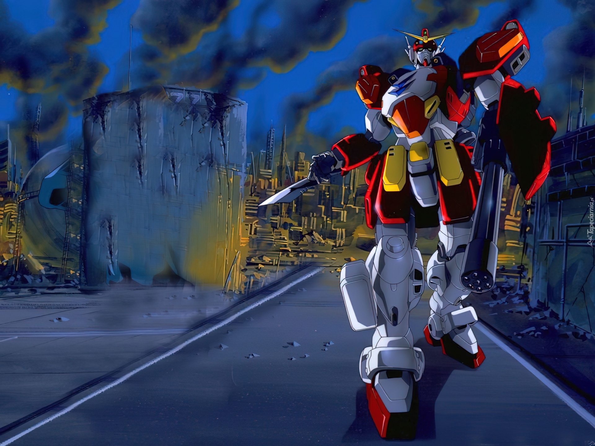 Edytor tapety: Gundam Wing, zniszczenie, robot, miasto, ruiny