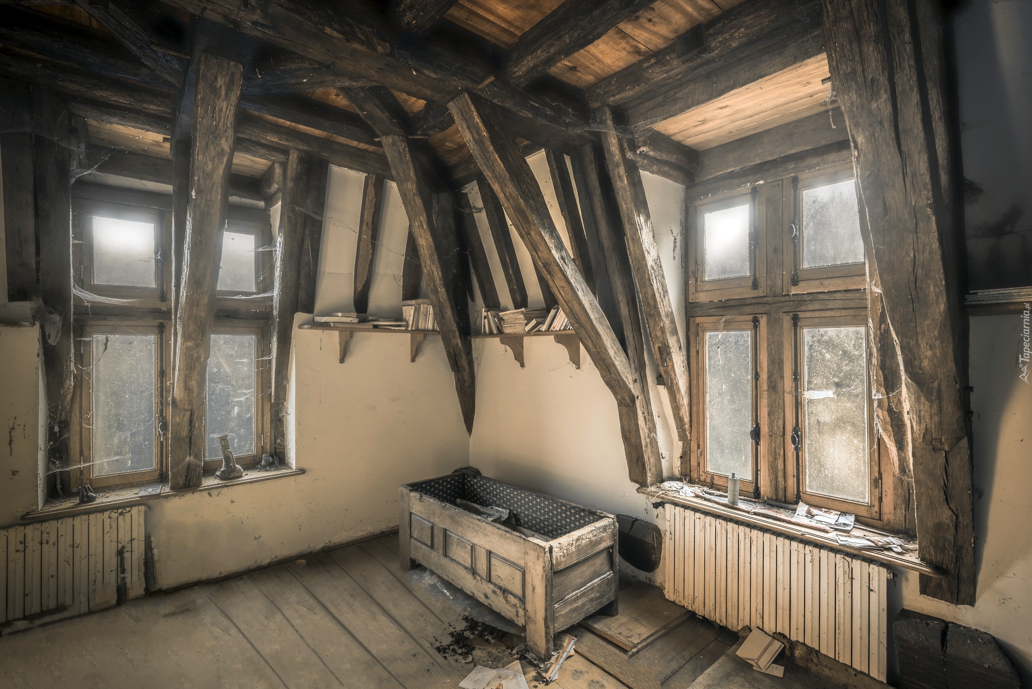 Edytor tapety: Skrzynia pod ścianą w zaniedbanym pomieszczeniu