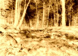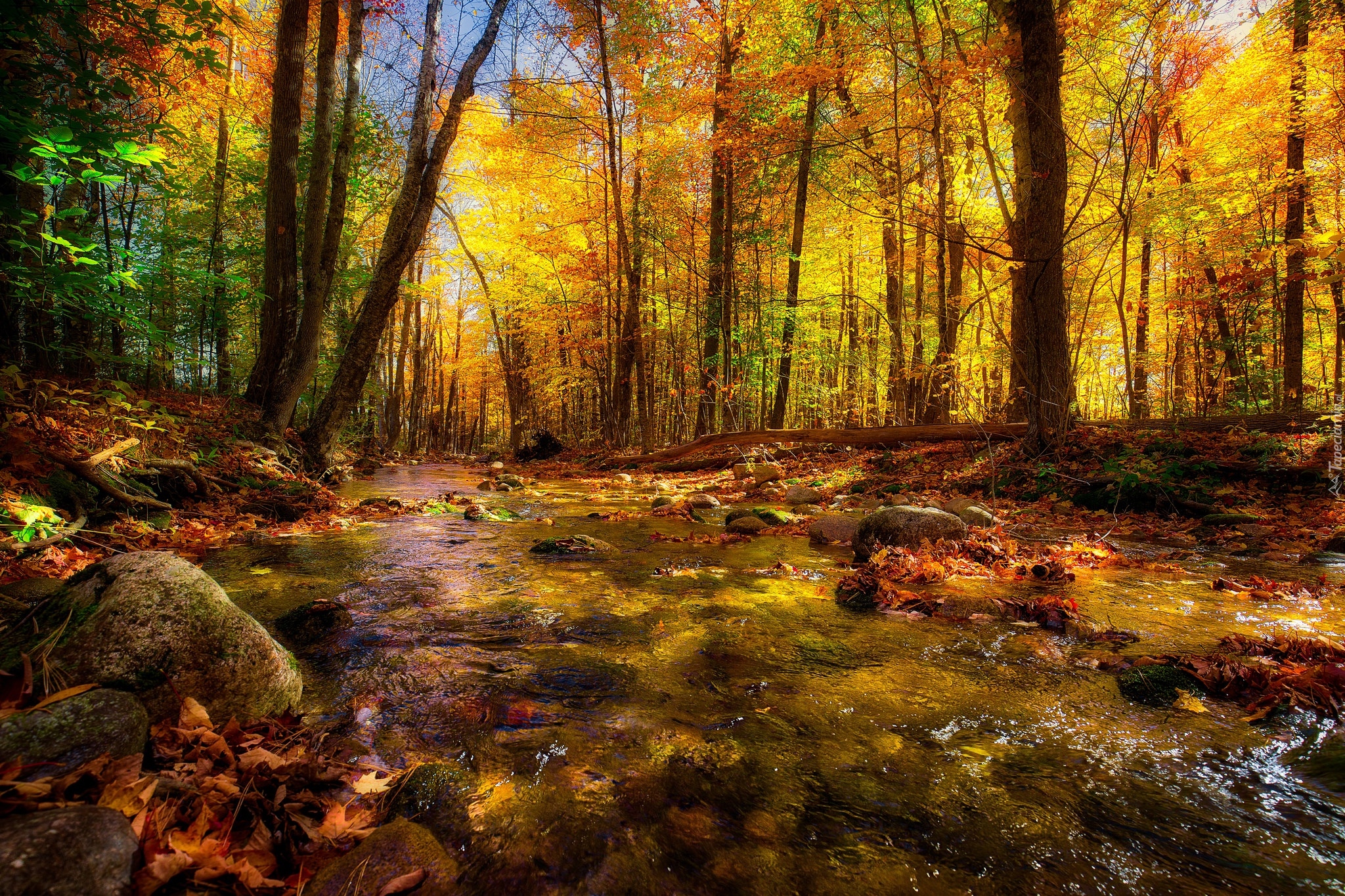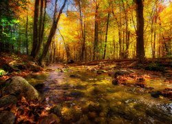 Edytor tapety: Leśna rzeka w promieniach słońca