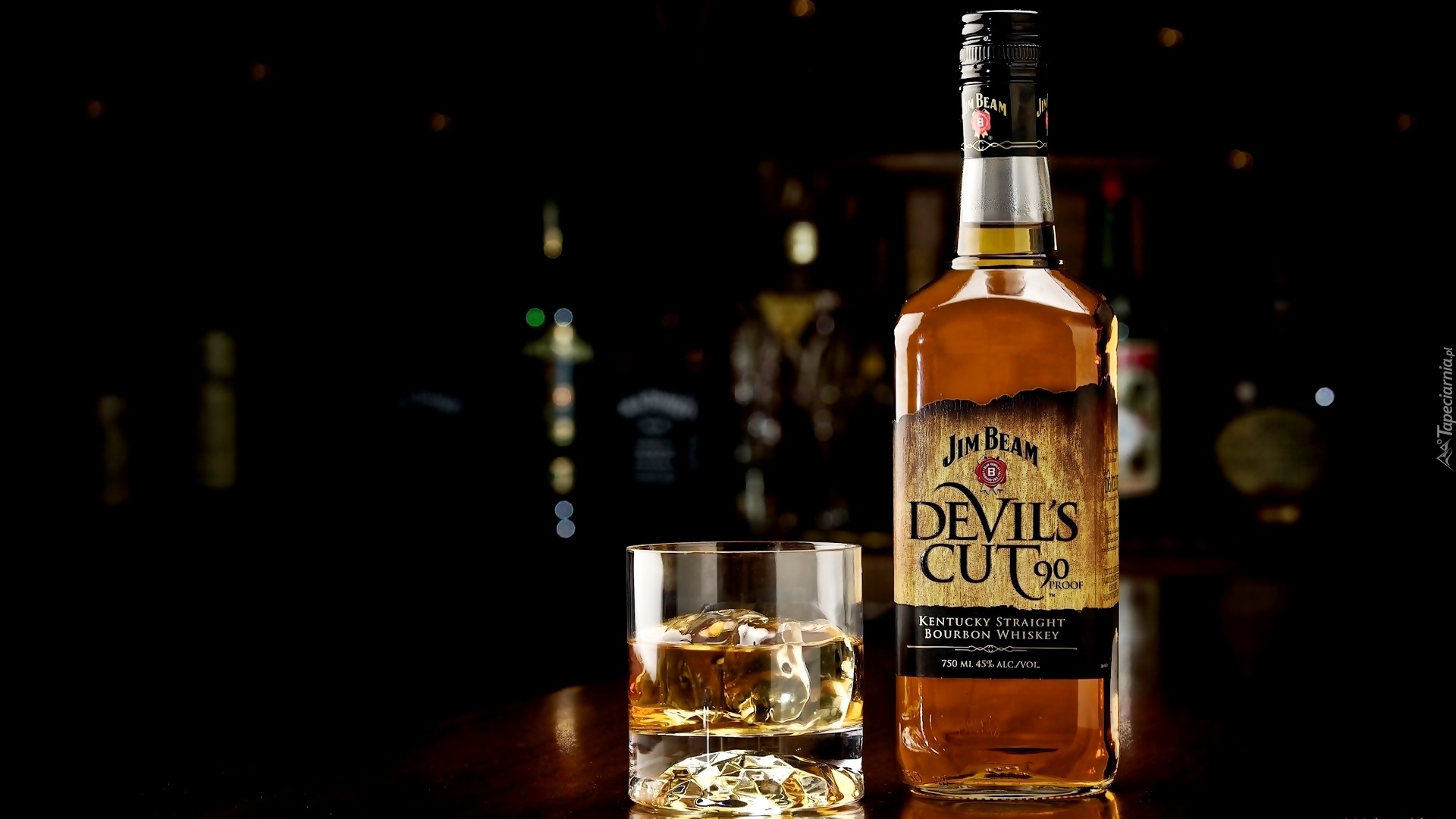 Edytor tapety: Szklanka whisky z lodem obok butelki