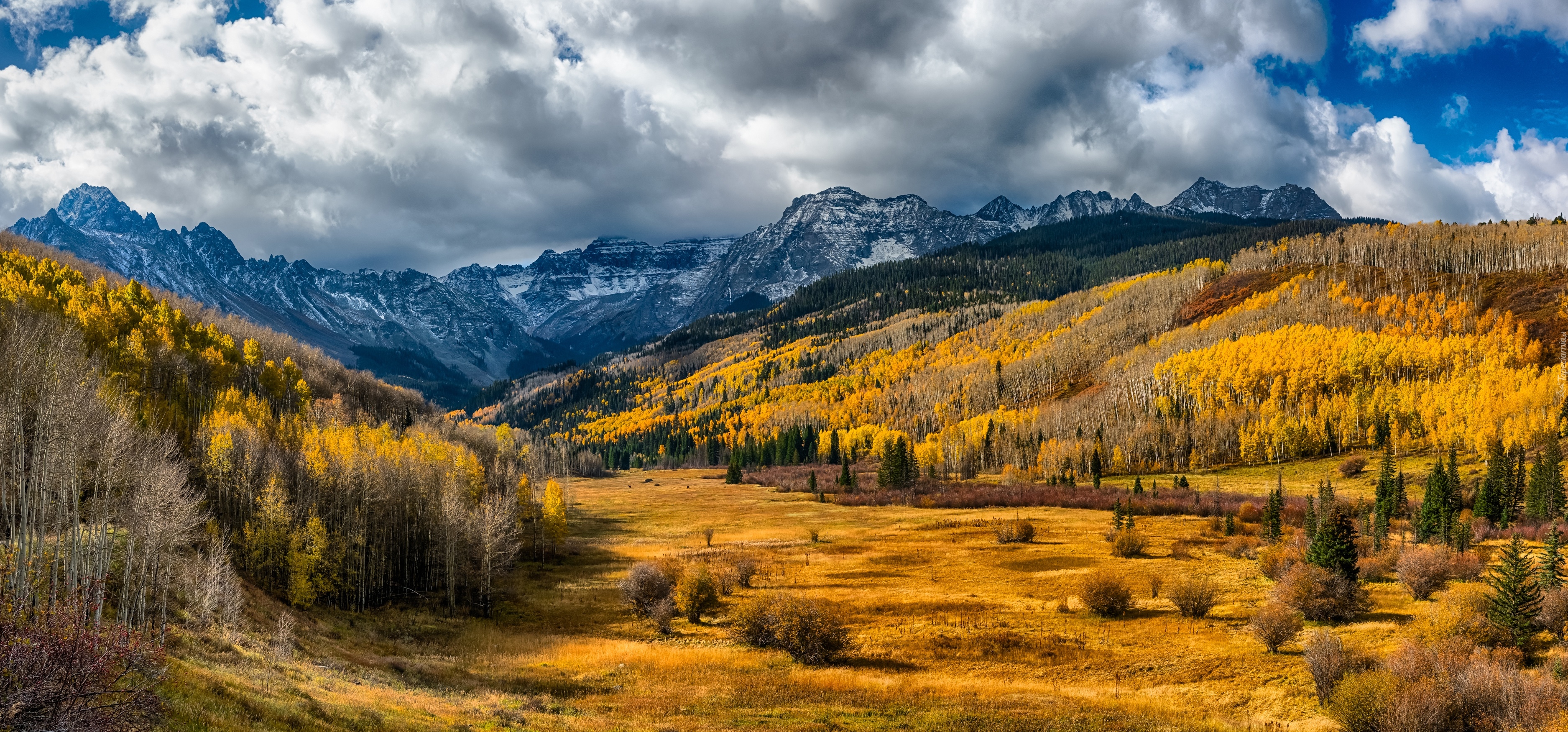 Edytor tapety: Las i góry jesienią