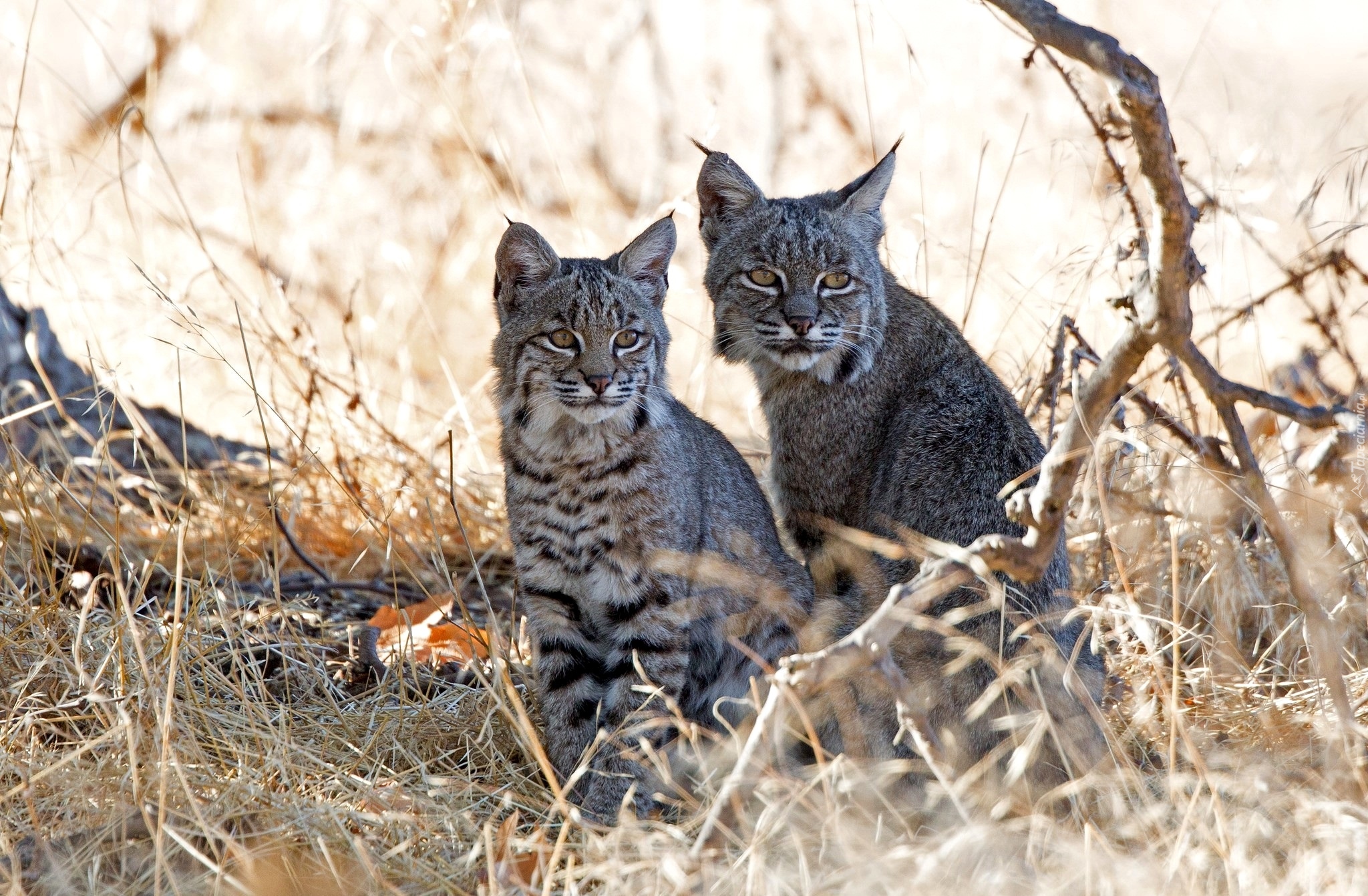 Edytor tapety: Dwa rysie w suchej trawie