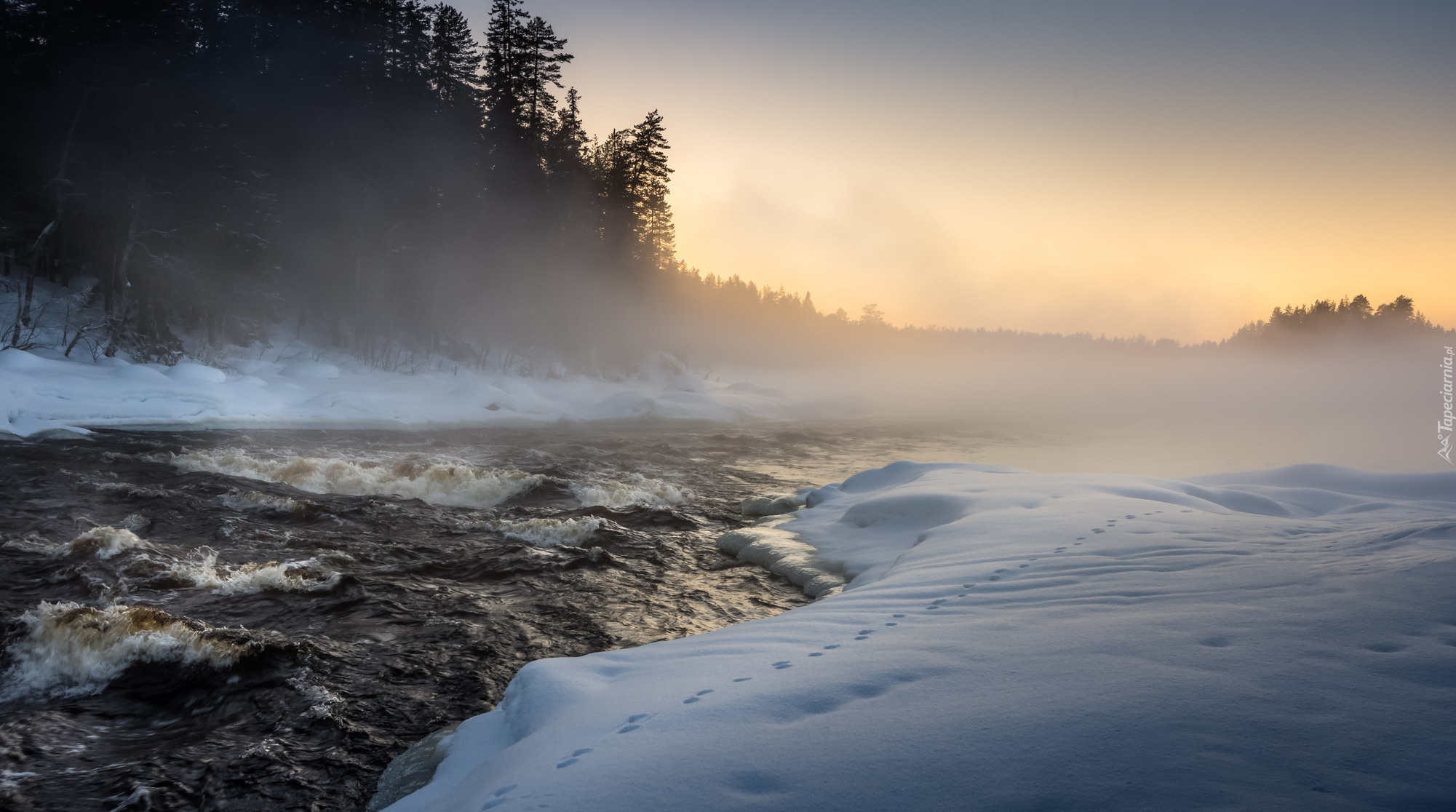 Edytor tapety: Mgła nad rzeką Neitikoski Rapid w Finlandii