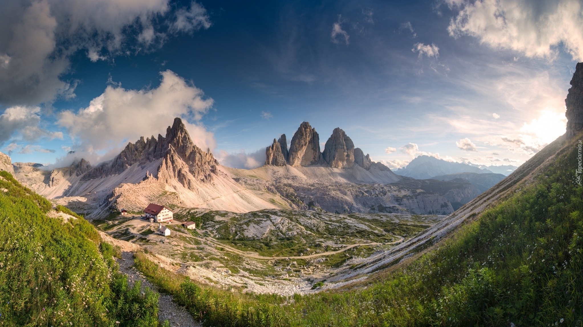 Edytor tapety: Schronisko Dreizinnenhütte u stóp szczytu Paterno w Dolomitach