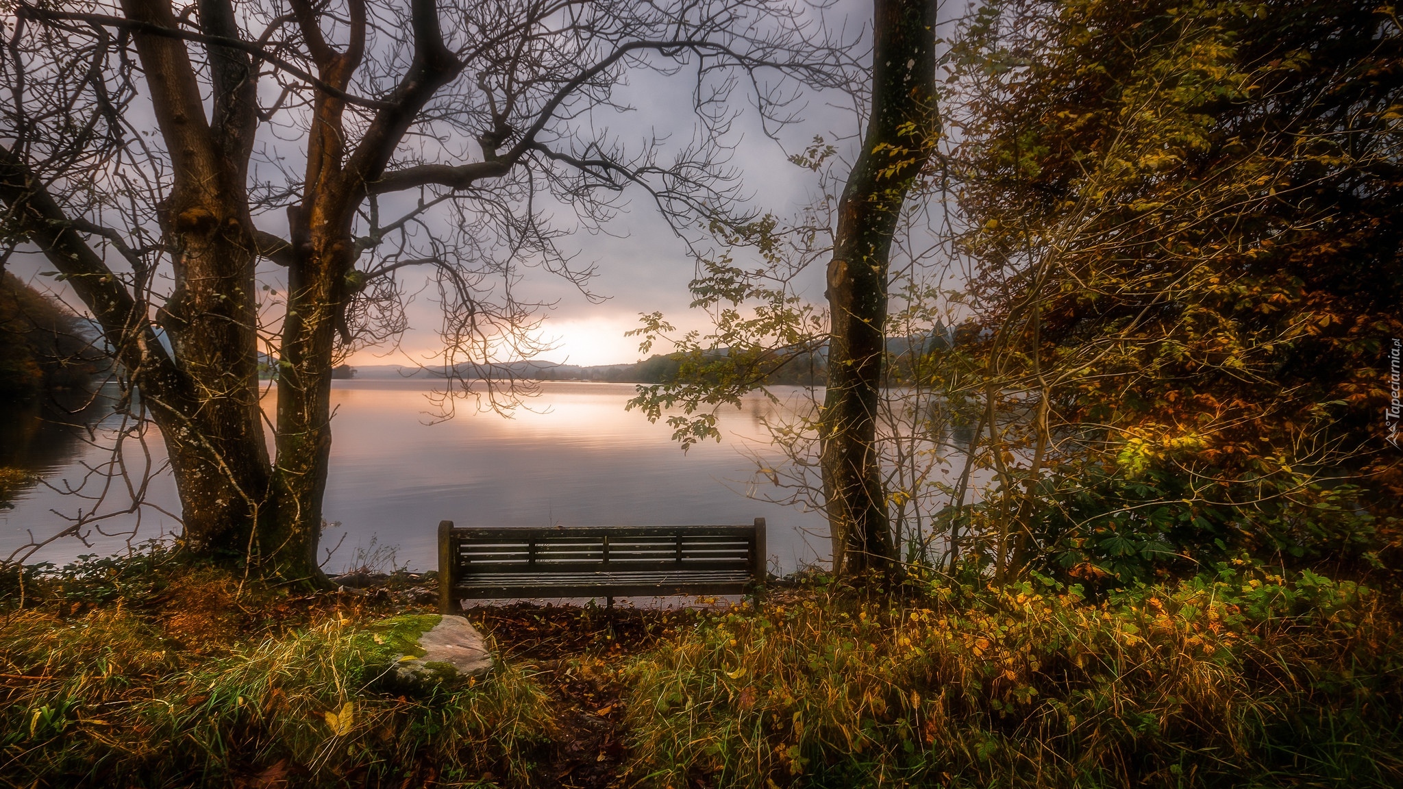 Edytor tapety: Ławka nad jeziorem Coniston Water w Anglii