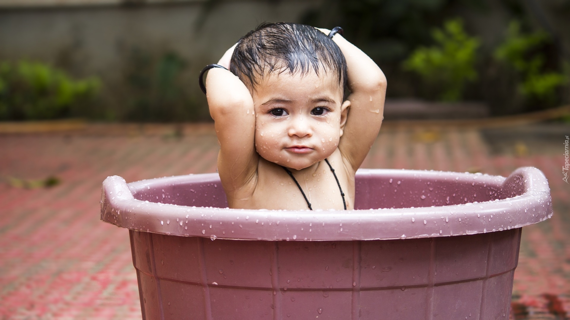 Edytor tapety: Chłopczyk podczas kąpieli w misce