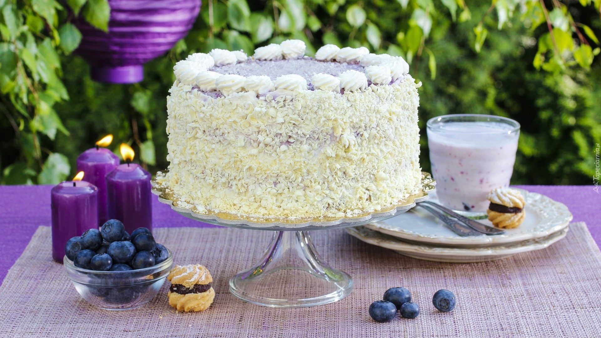 Edytor tapety: Świece i talerzyki obok tortu na paterze