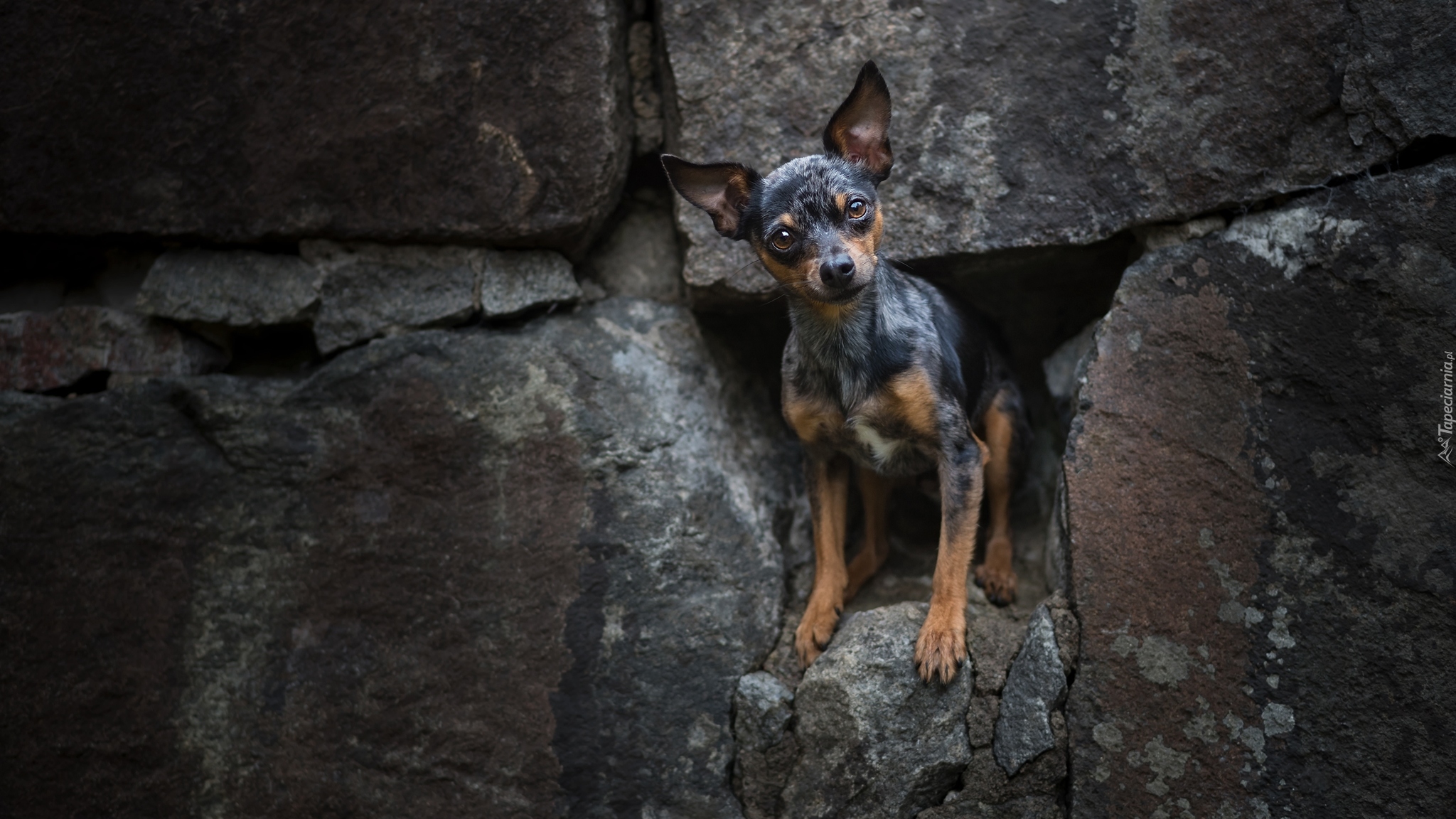 Edytor tapety: Pinczer miniaturowy na murze