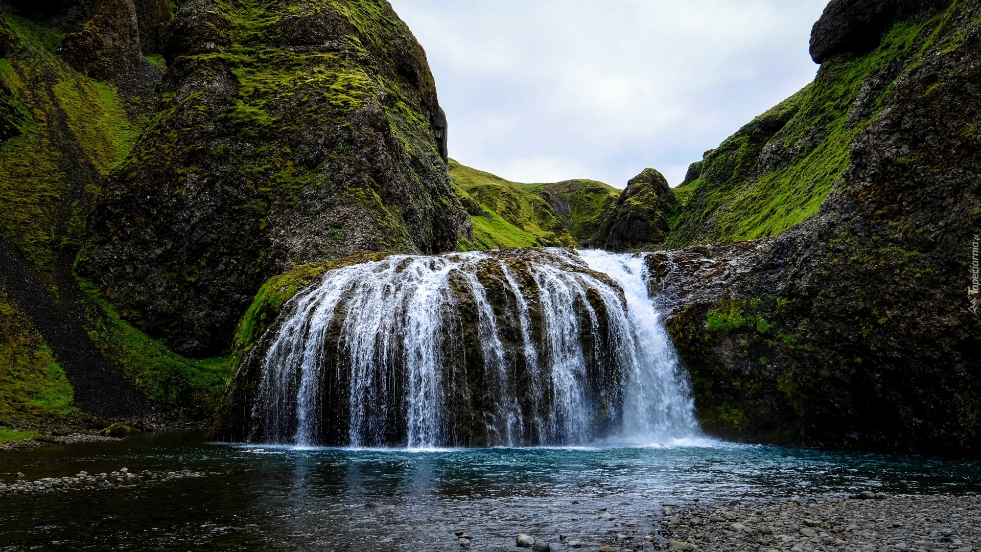 Edytor tapety: Wodospad z omszałymi kamieniami