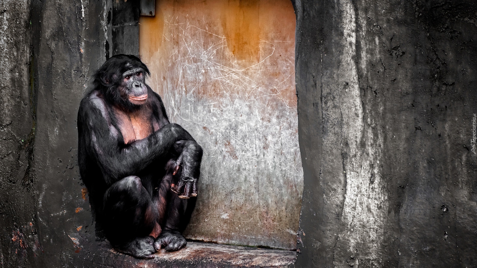 Edytor tapety: Siedzący szympans