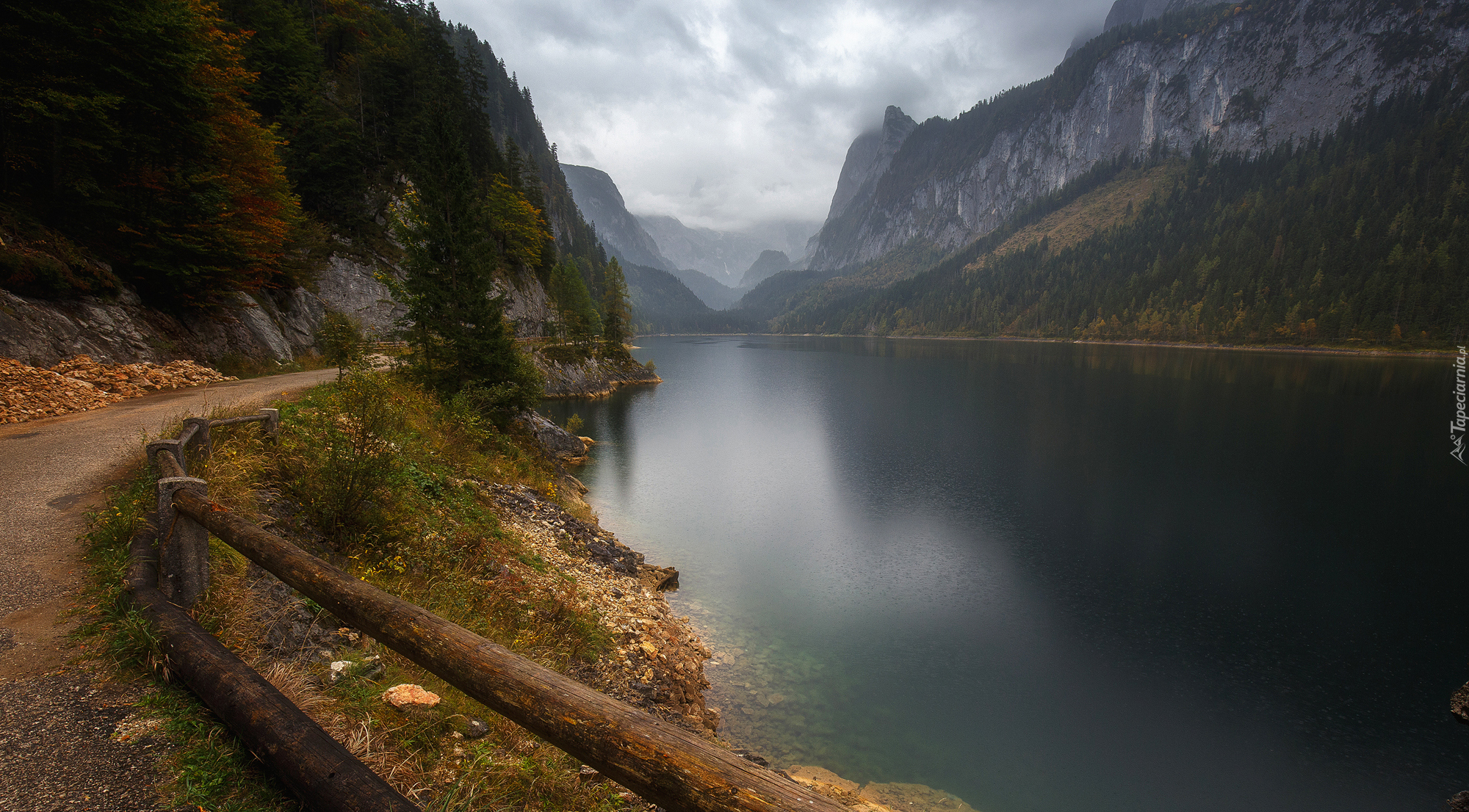 Edytor tapety: Droga w górach prowadząca wzdłuż rzeki
