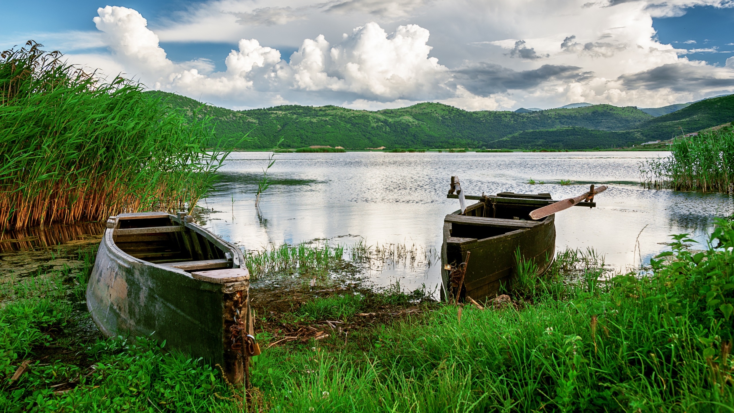 Edytor tapety: Stare łódki nad jeziorem