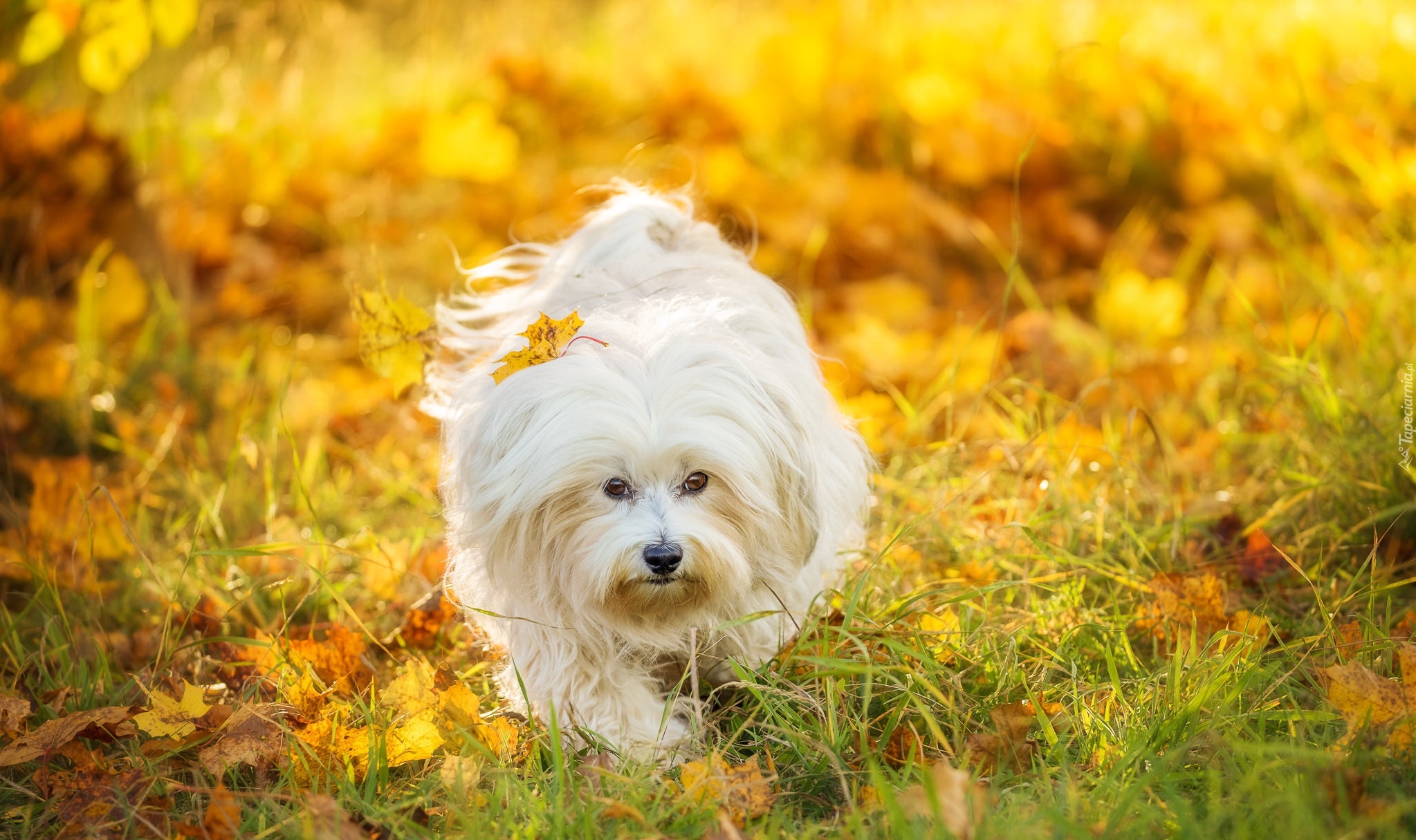 Edytor tapety: Maltańczyk i jesienne liście