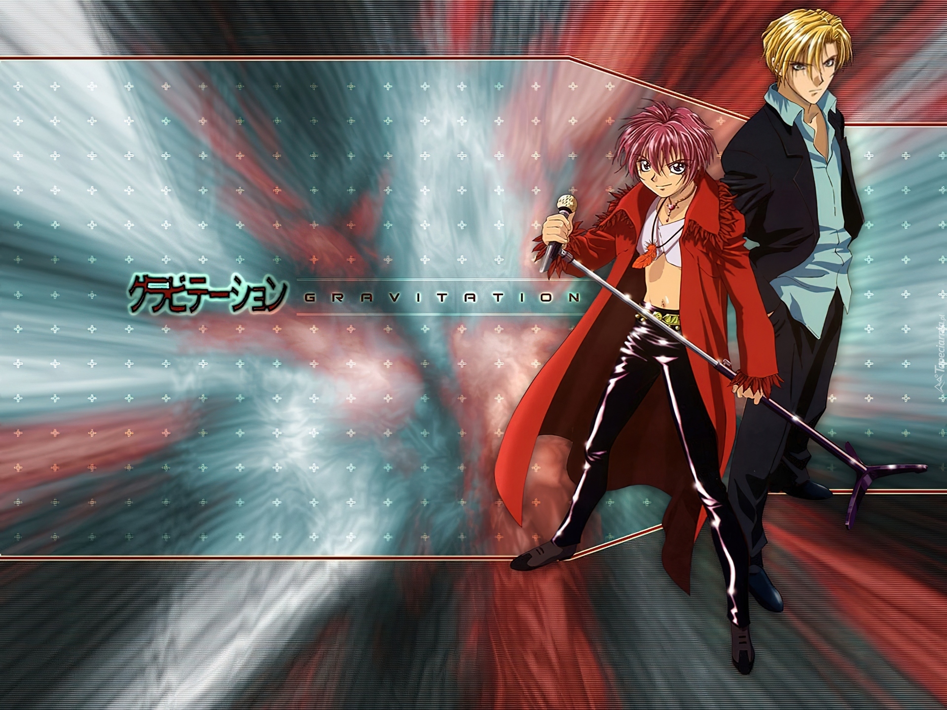 Edytor tapety: Gravitation, napis, ludzie, mikrofon