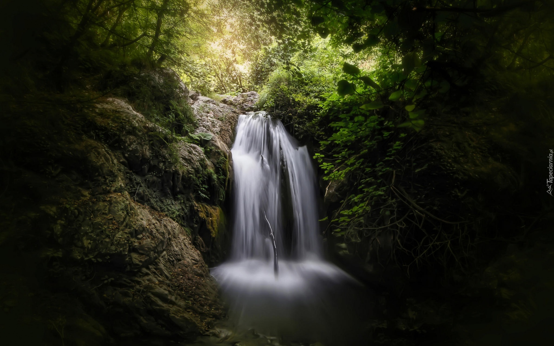 Edytor tapety: Wodospad wśród drzew