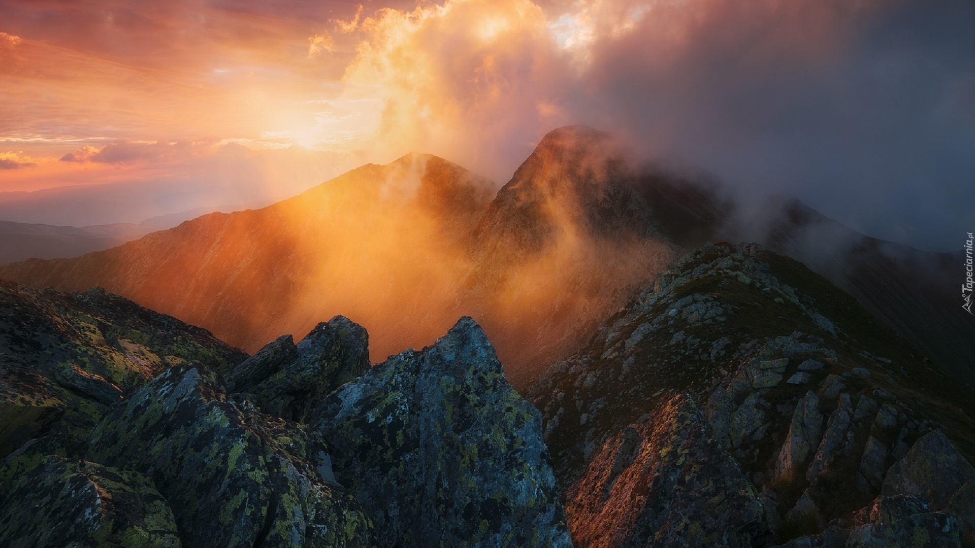 Edytor tapety: Karpaty we mgle o wschodzie słońca