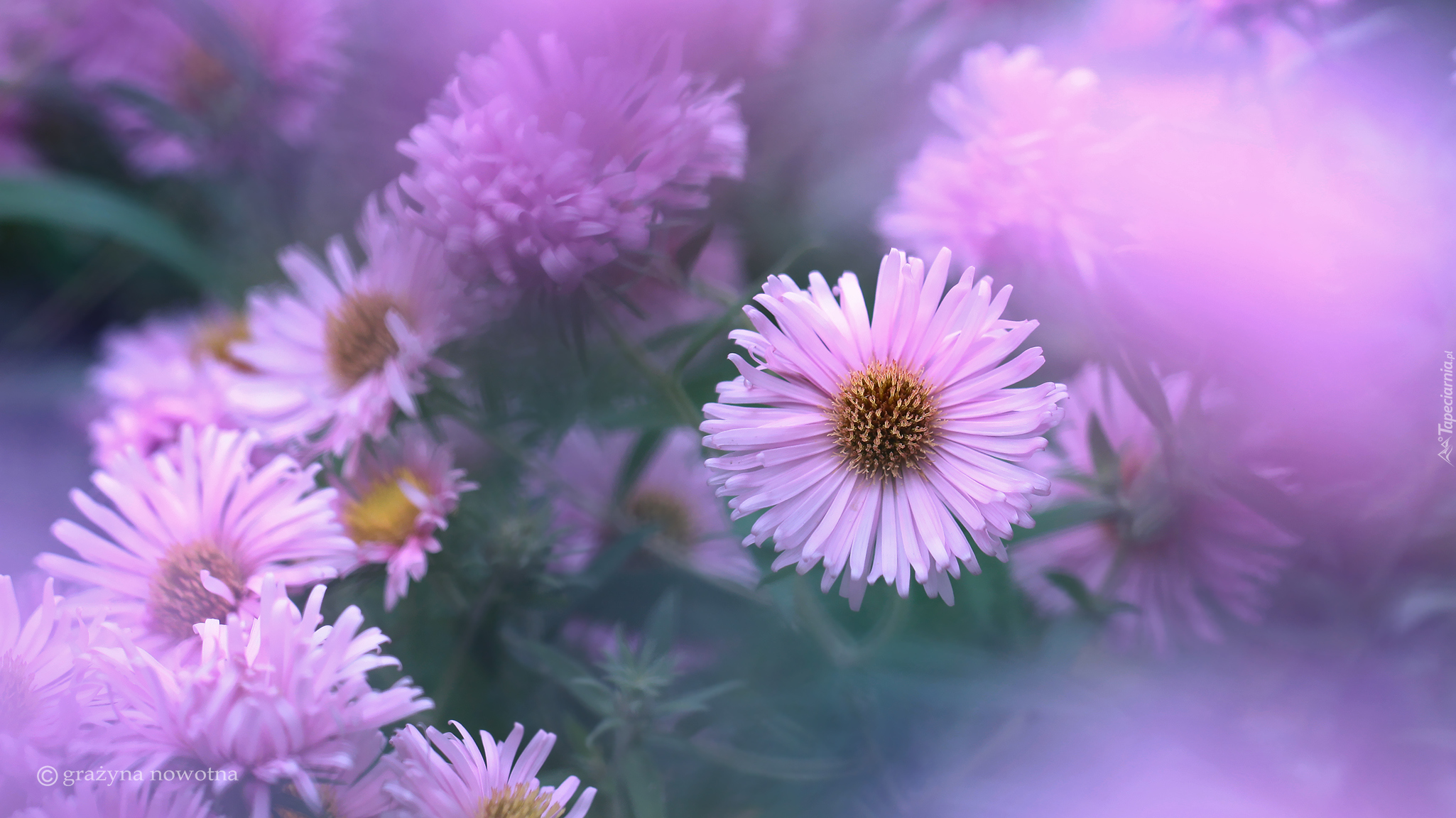 Edytor tapety: Jasnoróżowe astry w rozmyciu