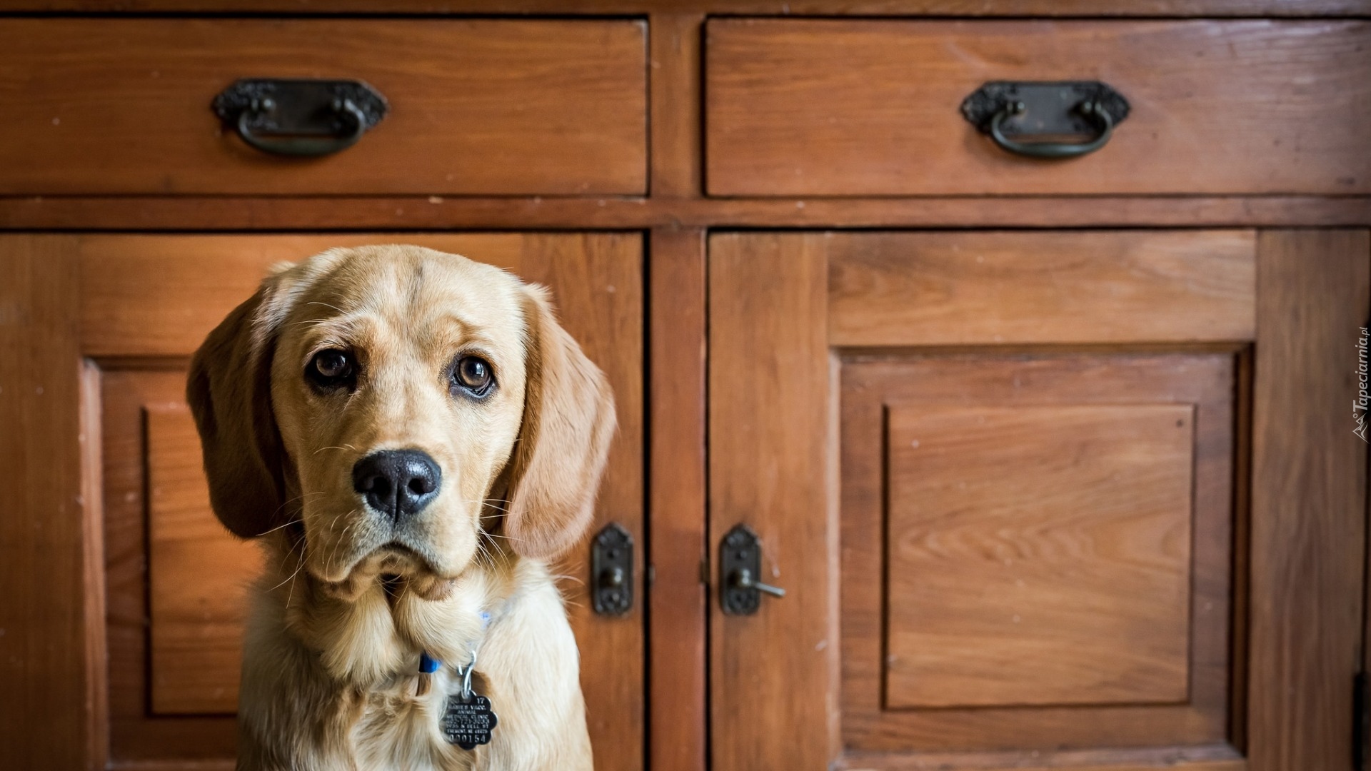 Edytor tapety: Spanador na tle komody