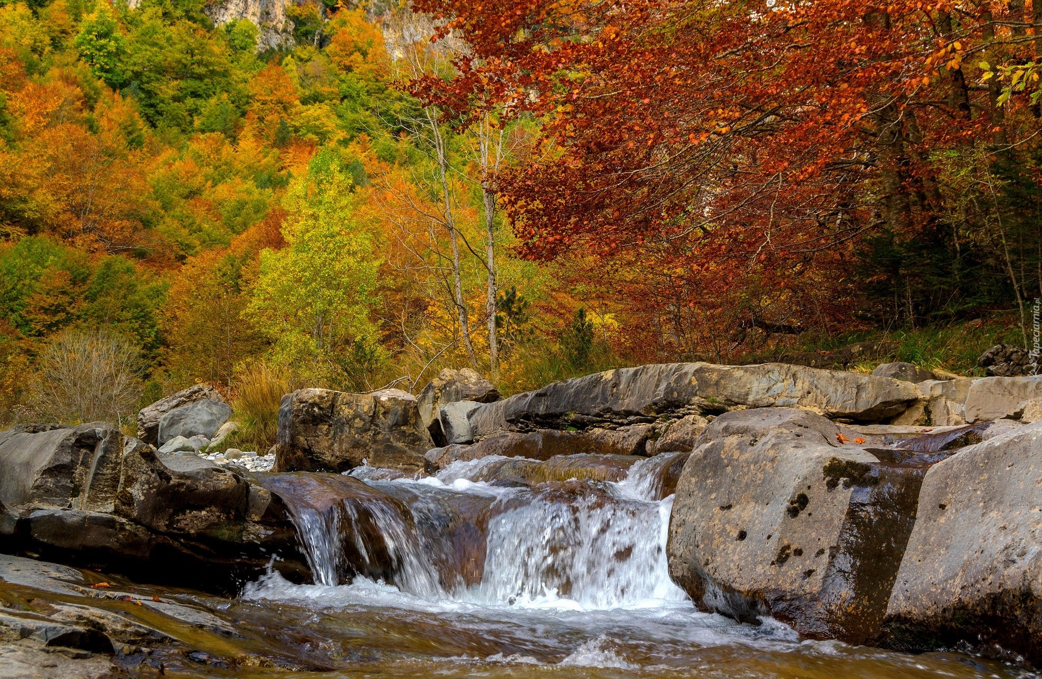 Edytor tapety: Jesienny las z kamienistą rzeką