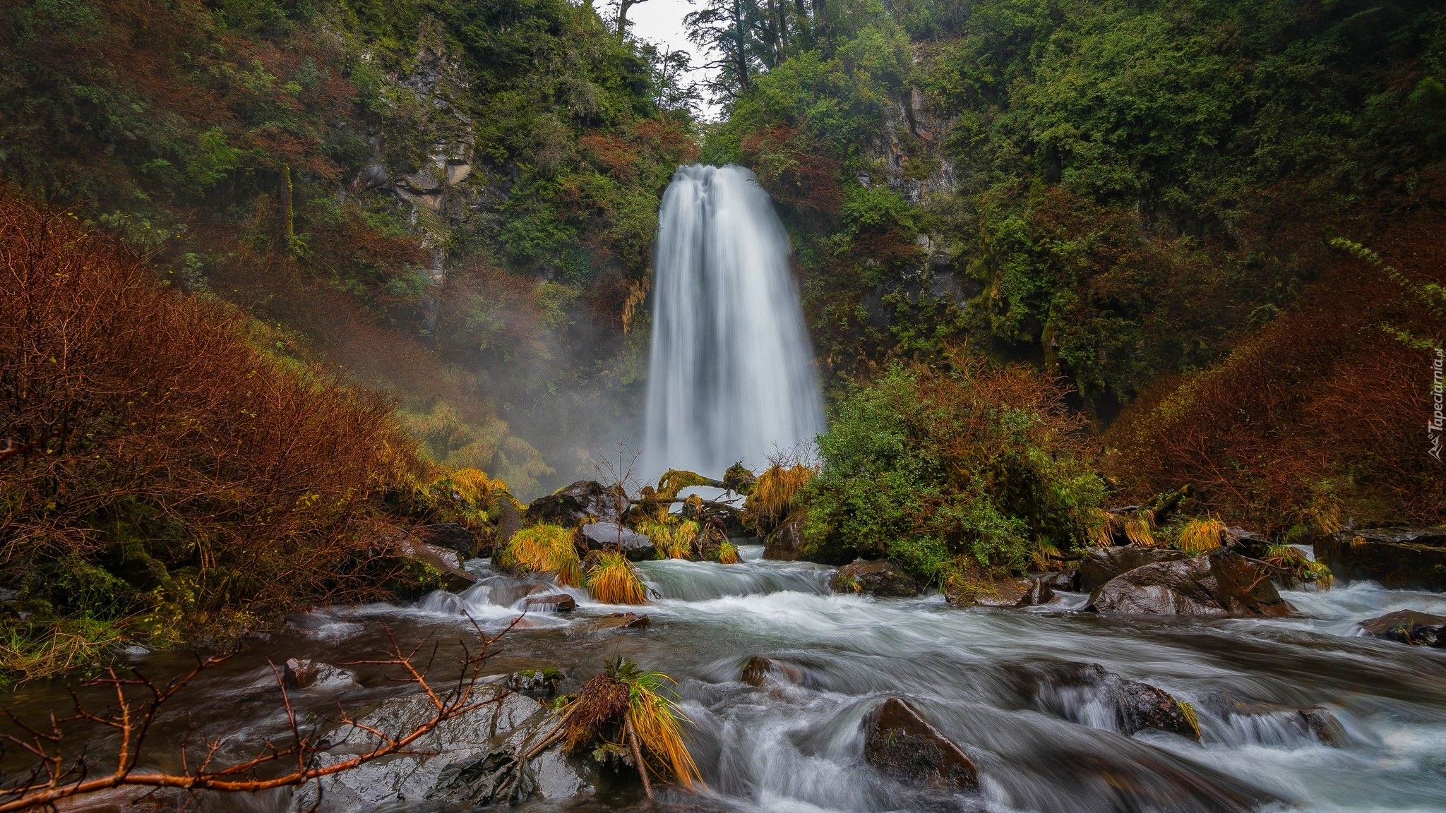Edytor tapety: Wodospad w lesie