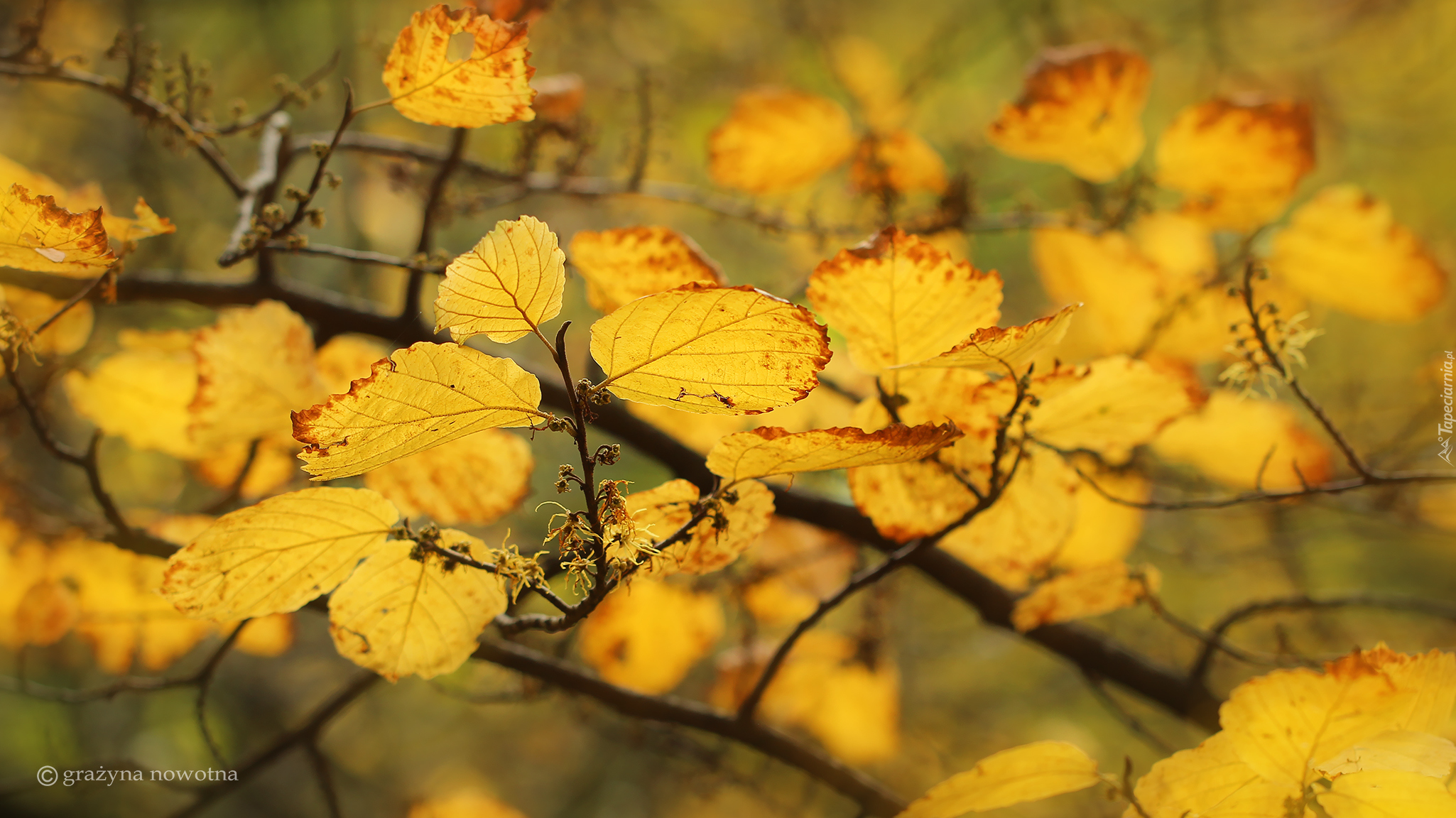 Edytor tapety: Żółte jesienne liście na gałązce