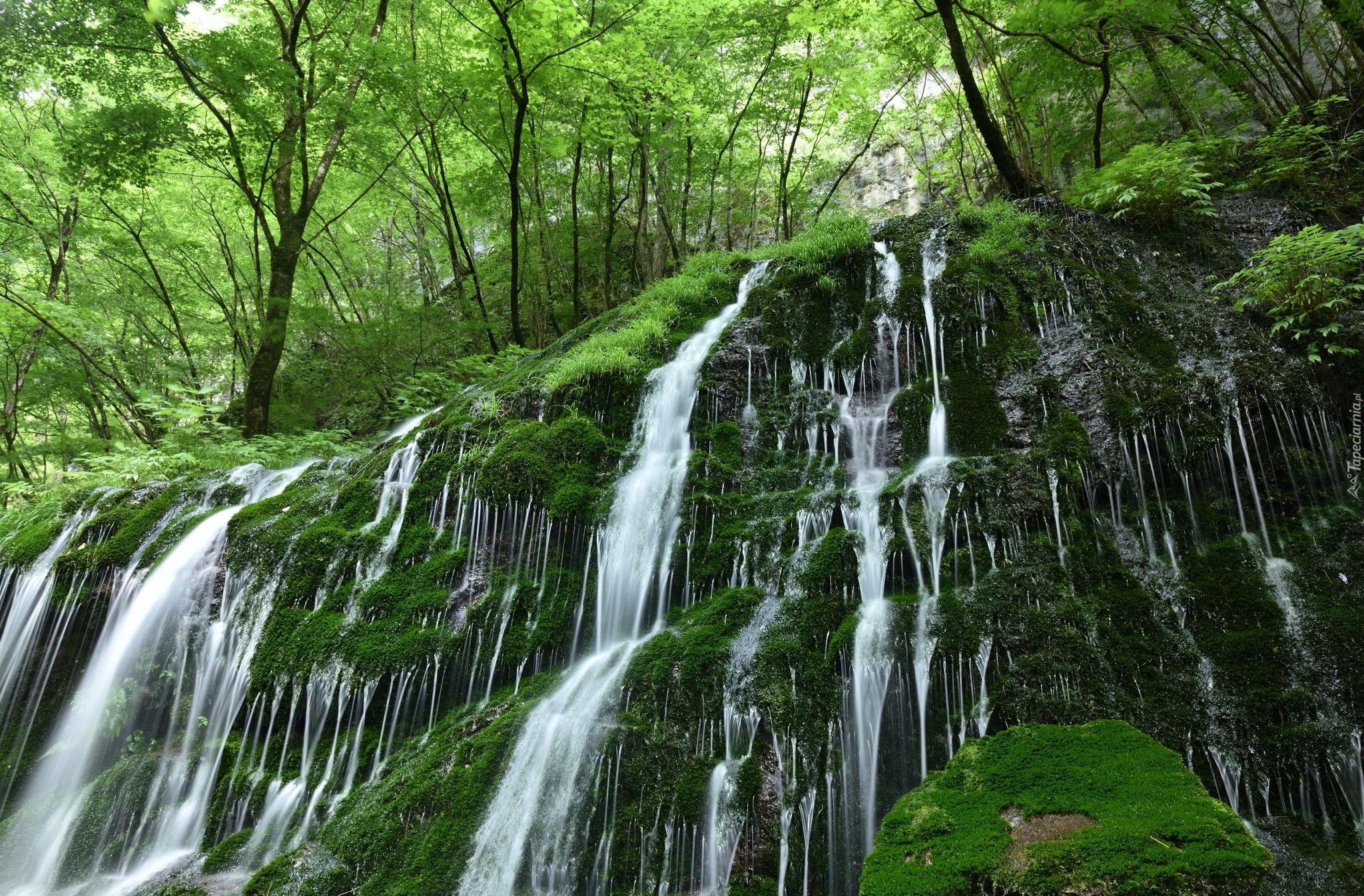 Edytor tapety: Wodospad w zielonym lesie