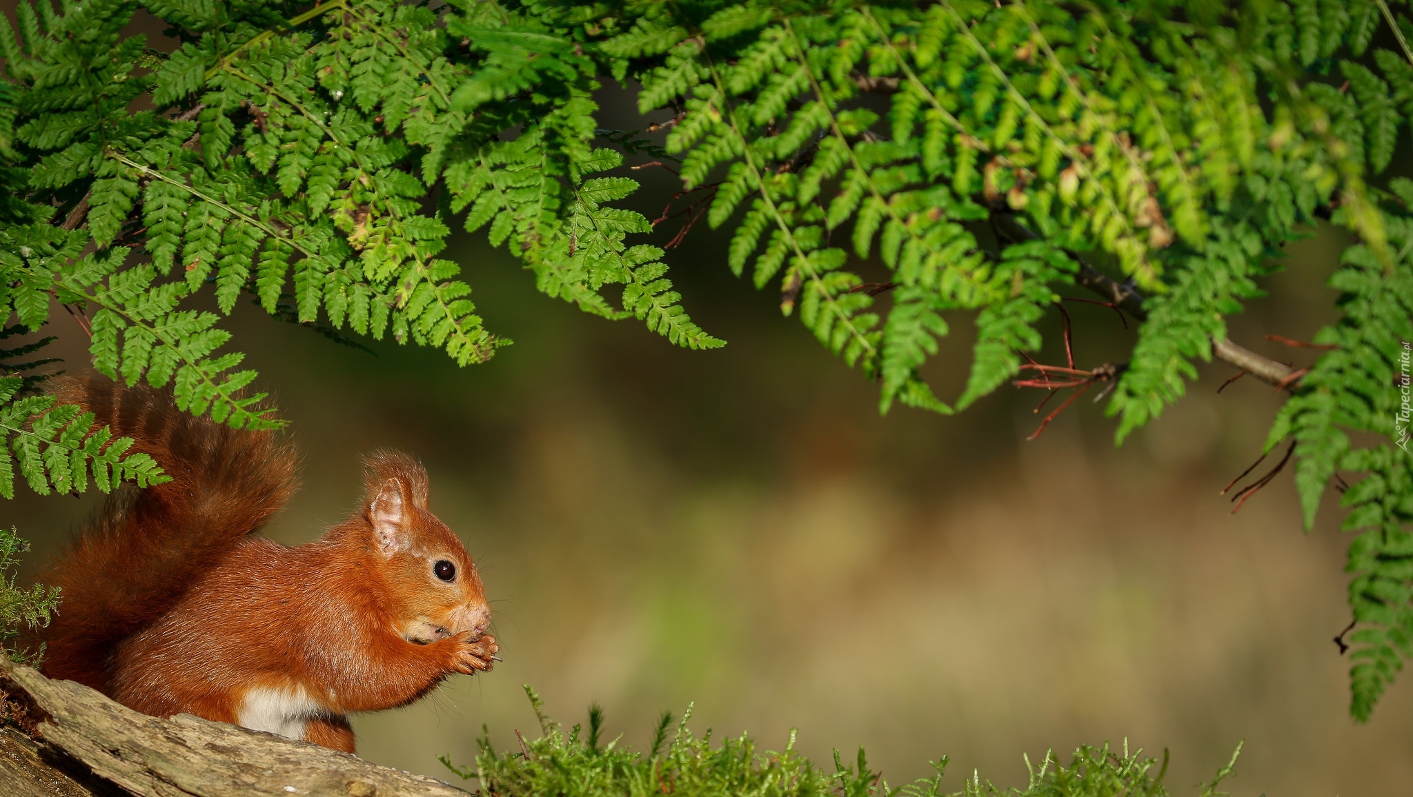 Edytor tapety: Wiewiórka pod paprocią