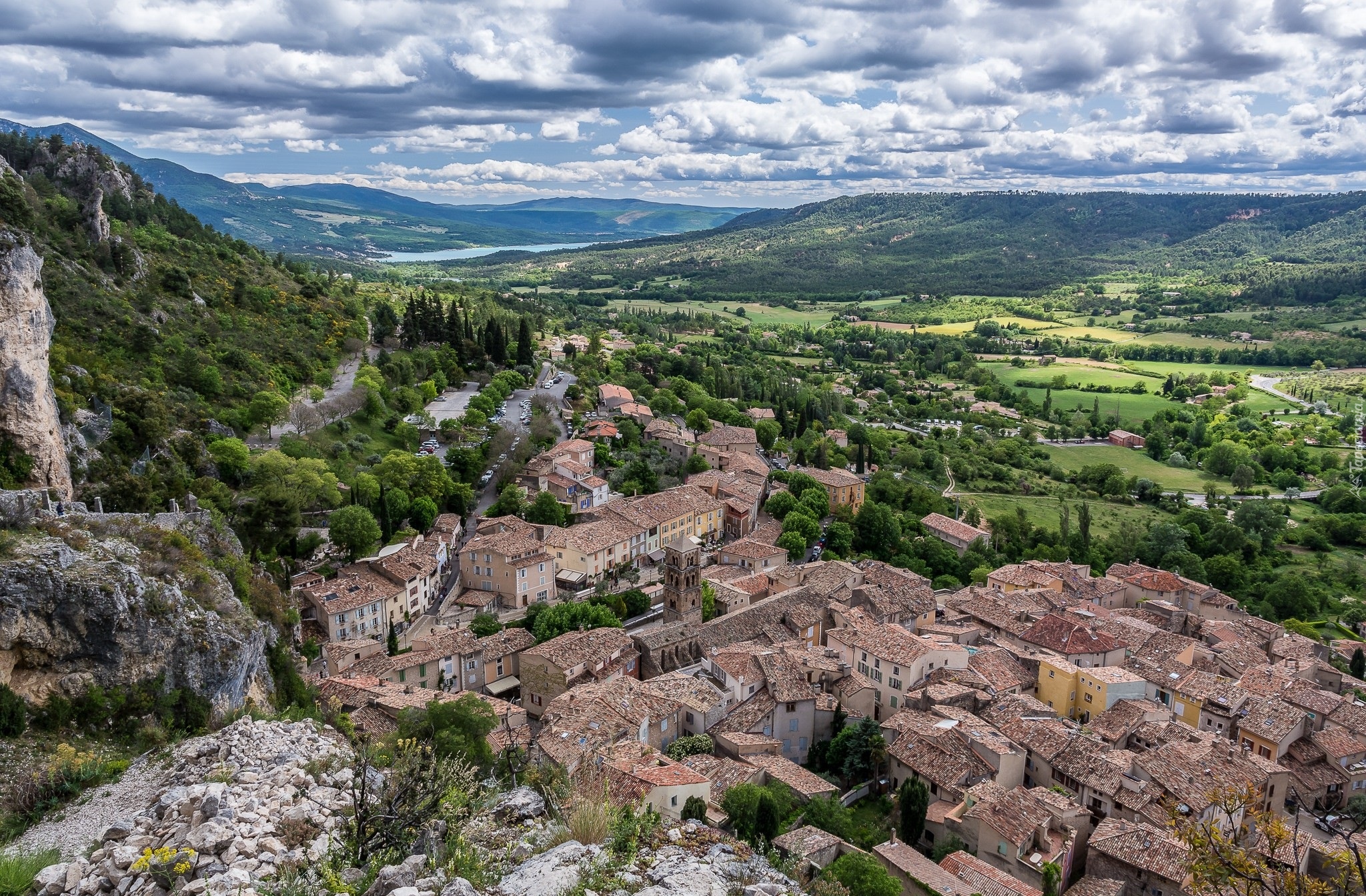 Edytor tapety: Domy i wzgórza widziane z lotu ptaka