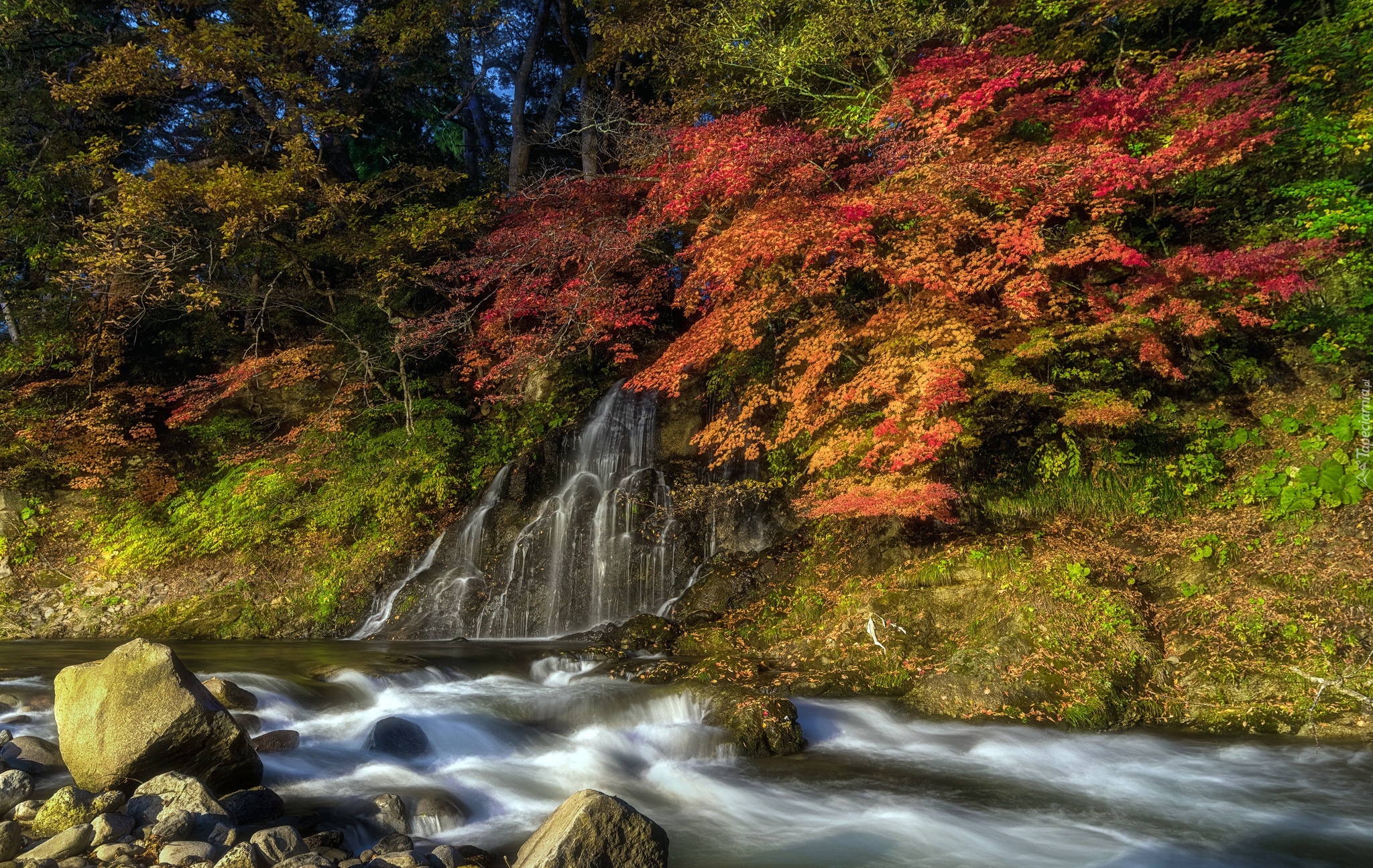 Edytor tapety: Jesień nad leśną rzeką