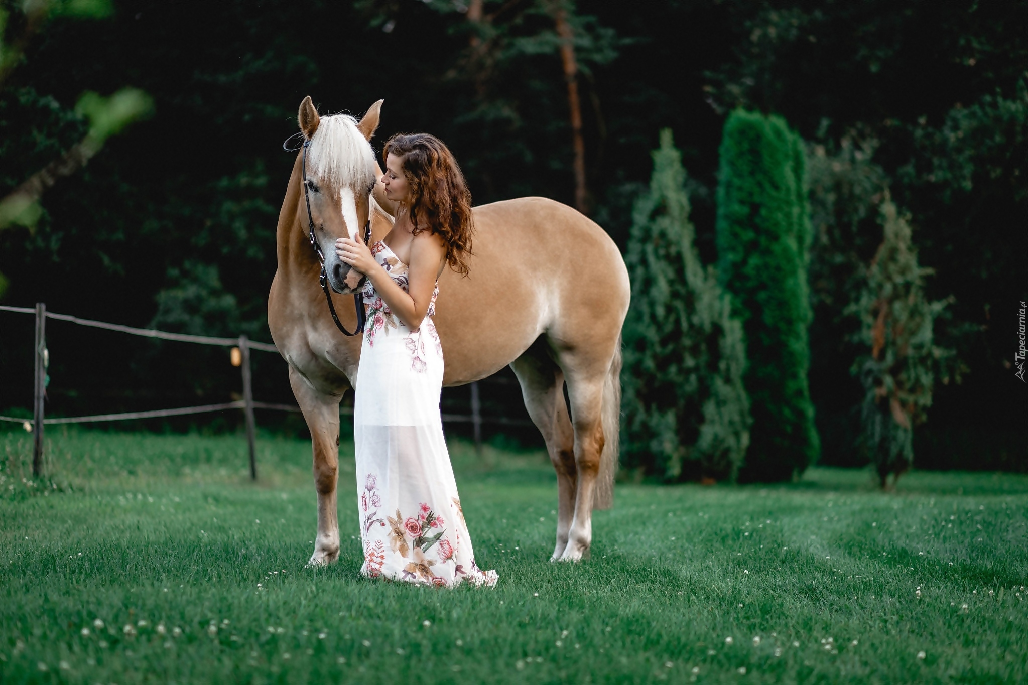 Edytor tapety: Szatynka głaszcząca konia