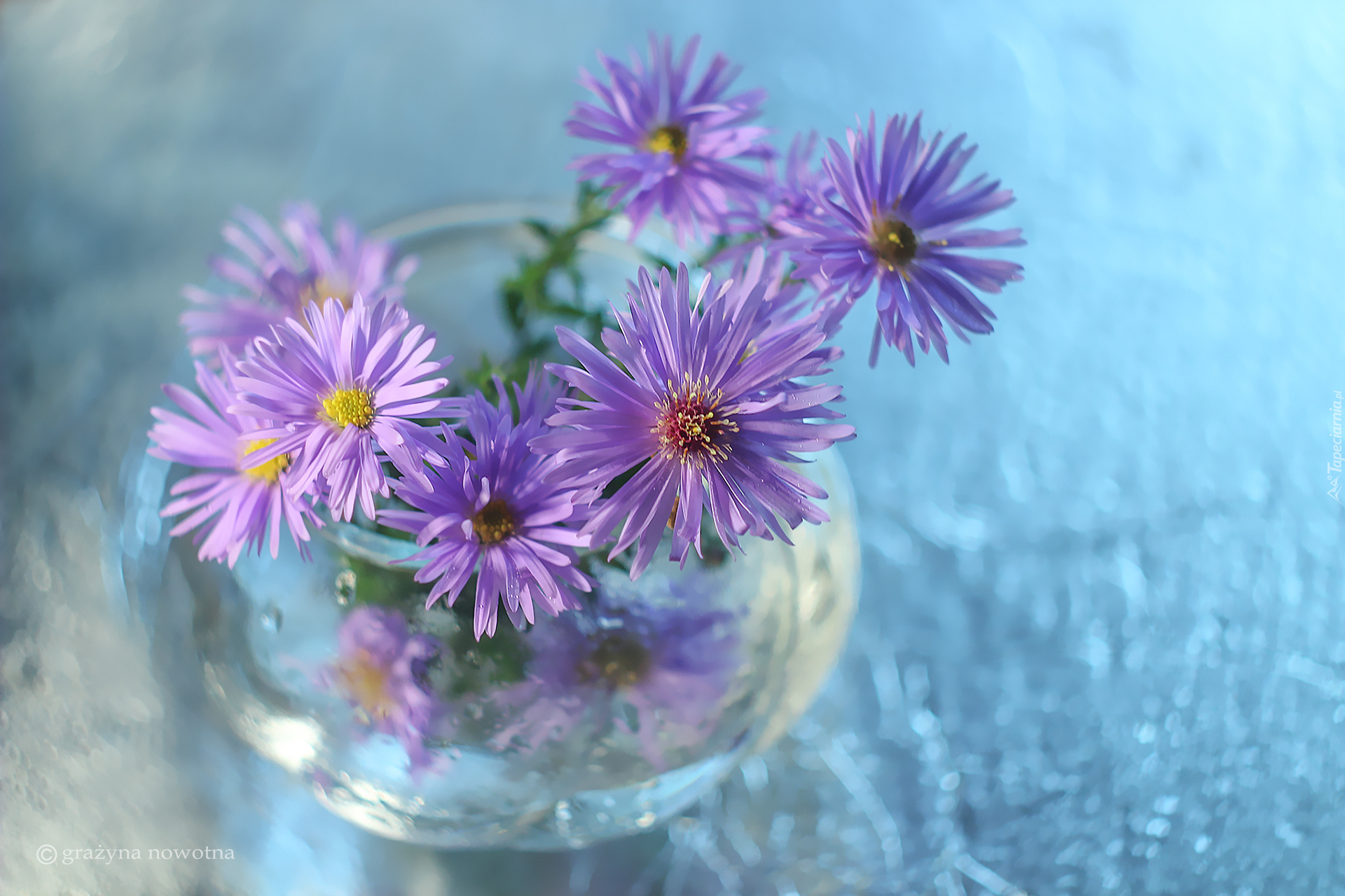Edytor tapety: Fioletowe astry w wazoniku
