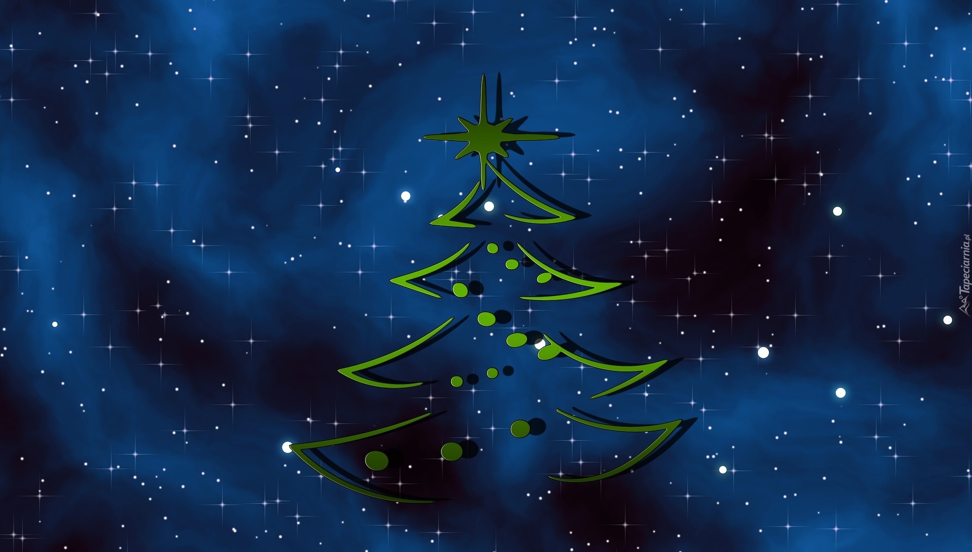 Edytor tapety: Choinka na tle gwiaździstego nieba w 2D