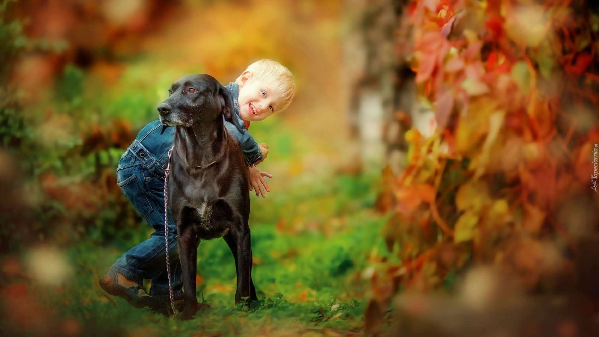 Edytor tapety: Zadowolone dziecko z psem