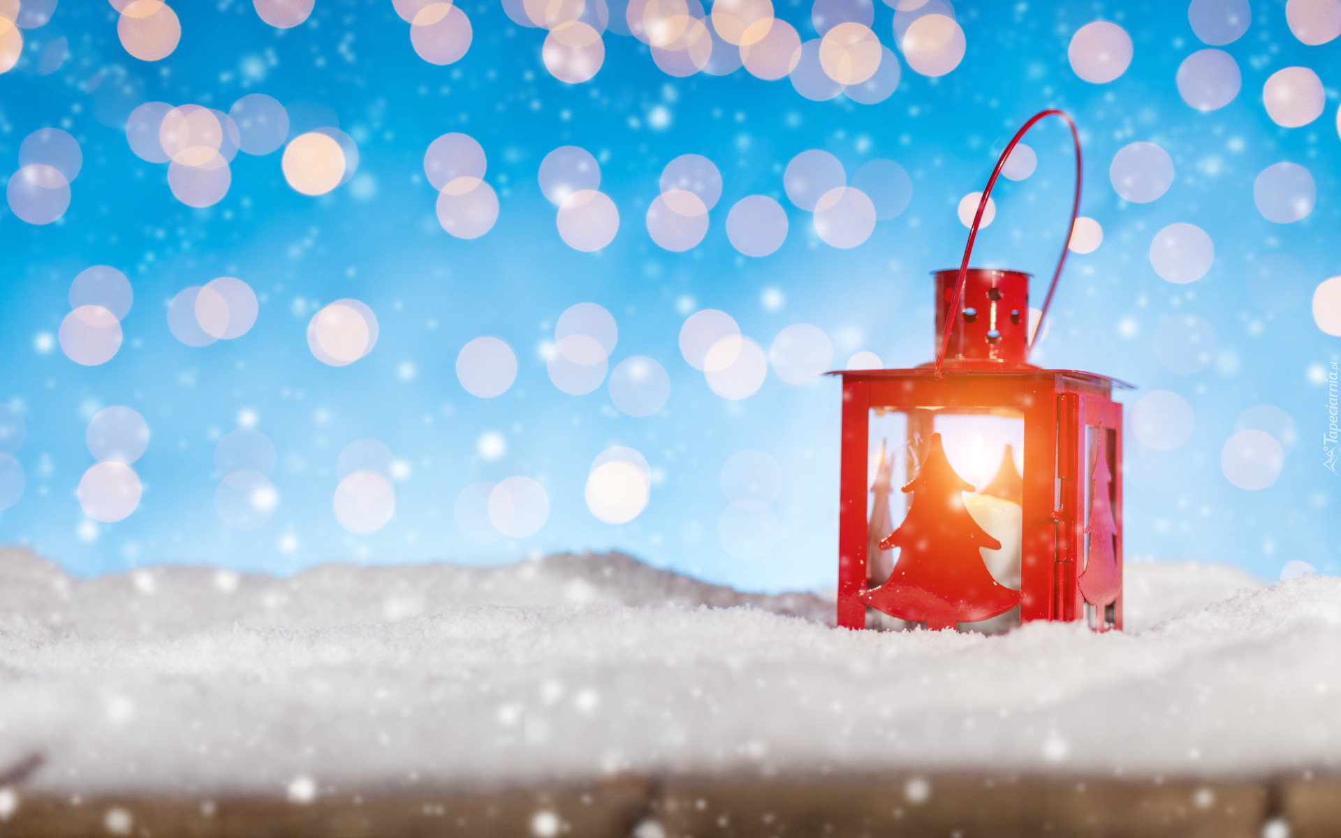 Edytor tapety: Czerwony lampion na śniegu