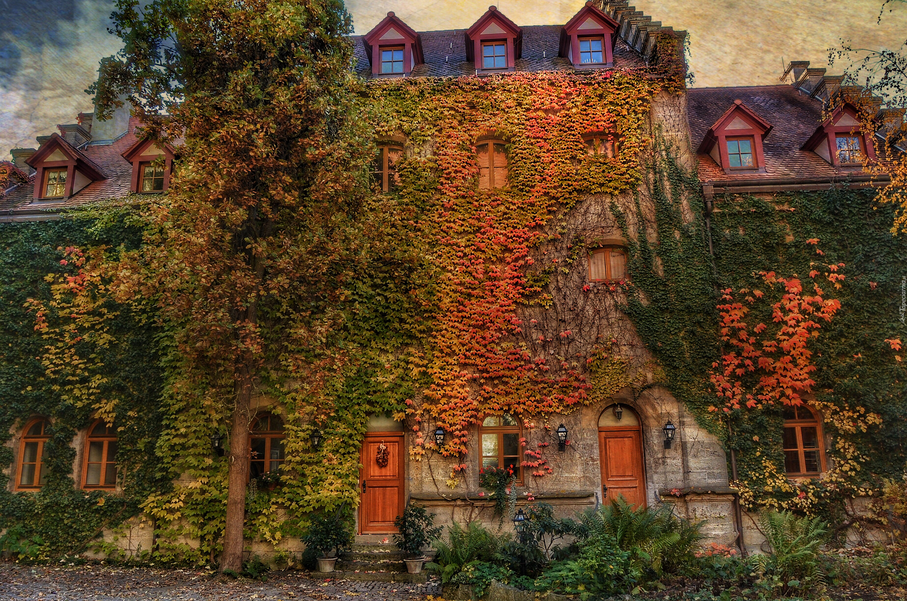 Edytor tapety: Dom porośnięty winobluszczem trójklapkowym